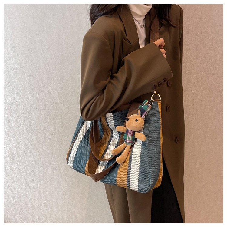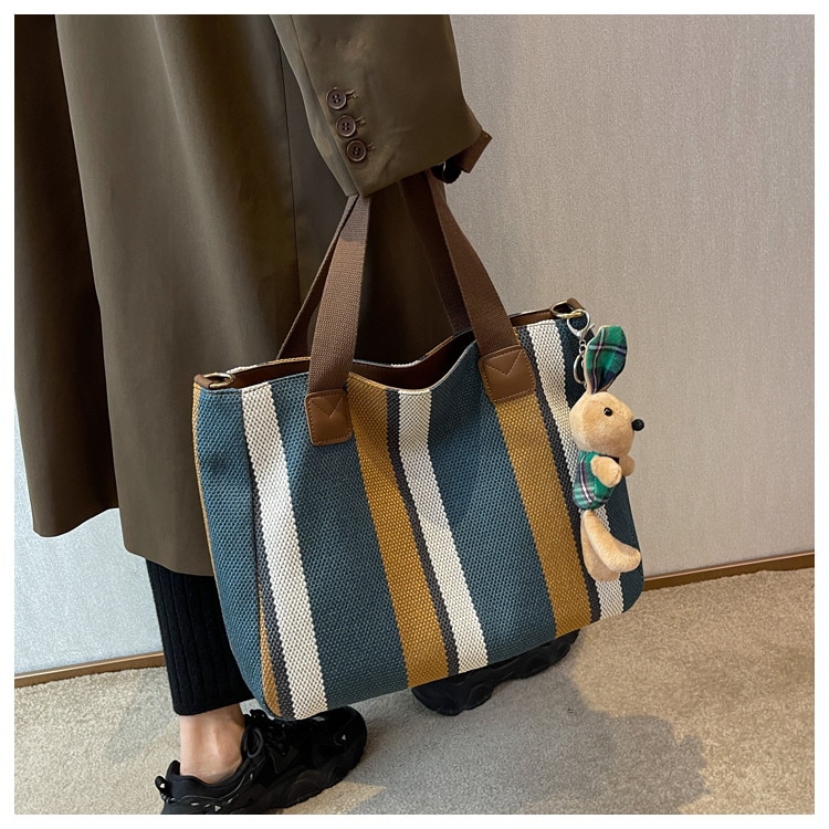韓国大サイズ パック レディース ファッション ストライプ ズックバッグ 通勤 手 提げバッグ トートバッグ ショルダーバッグ トートバッグ
