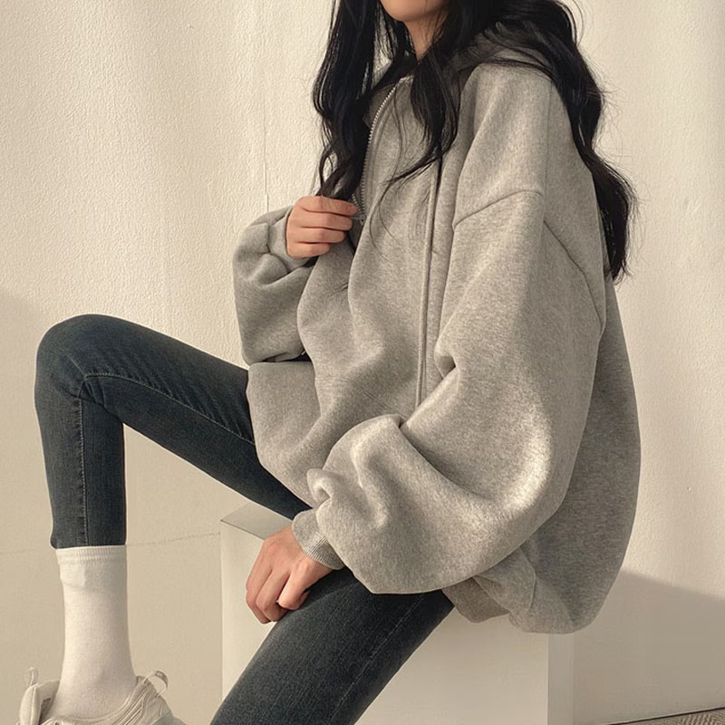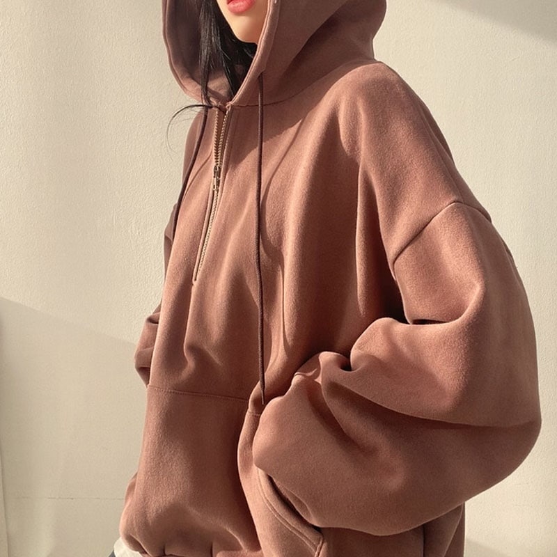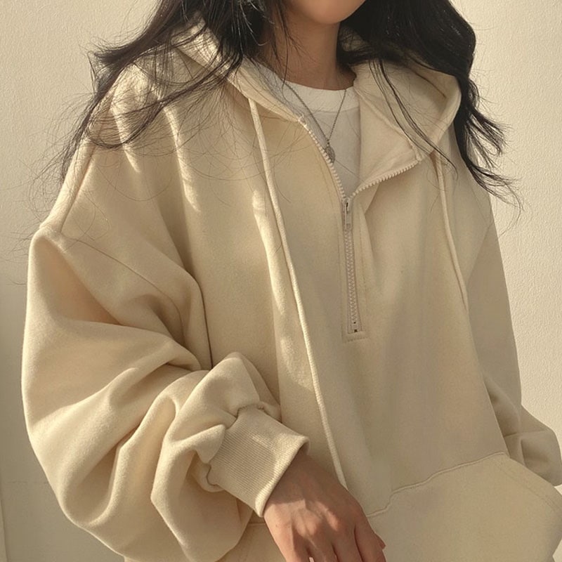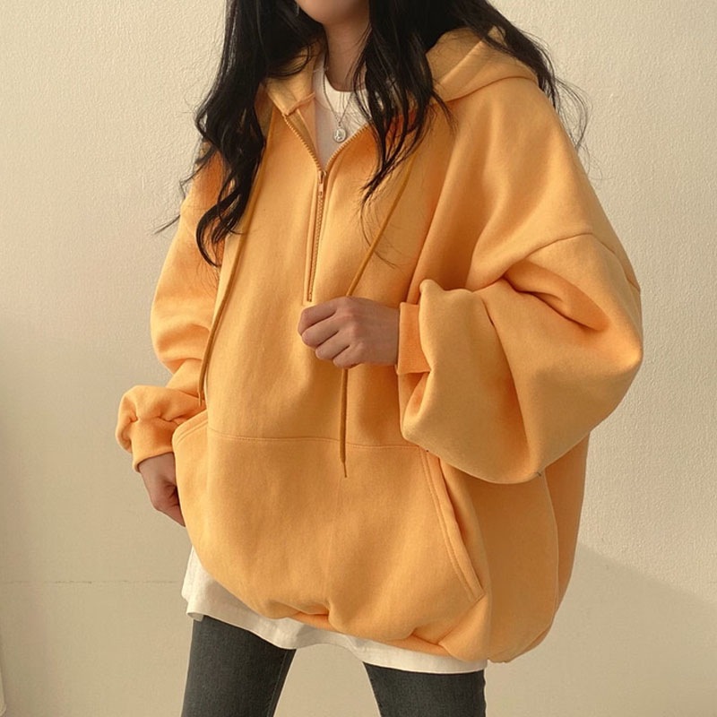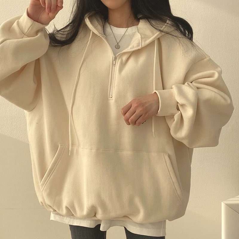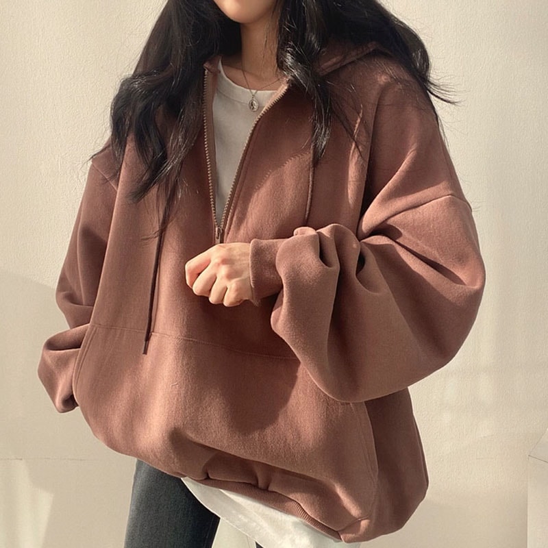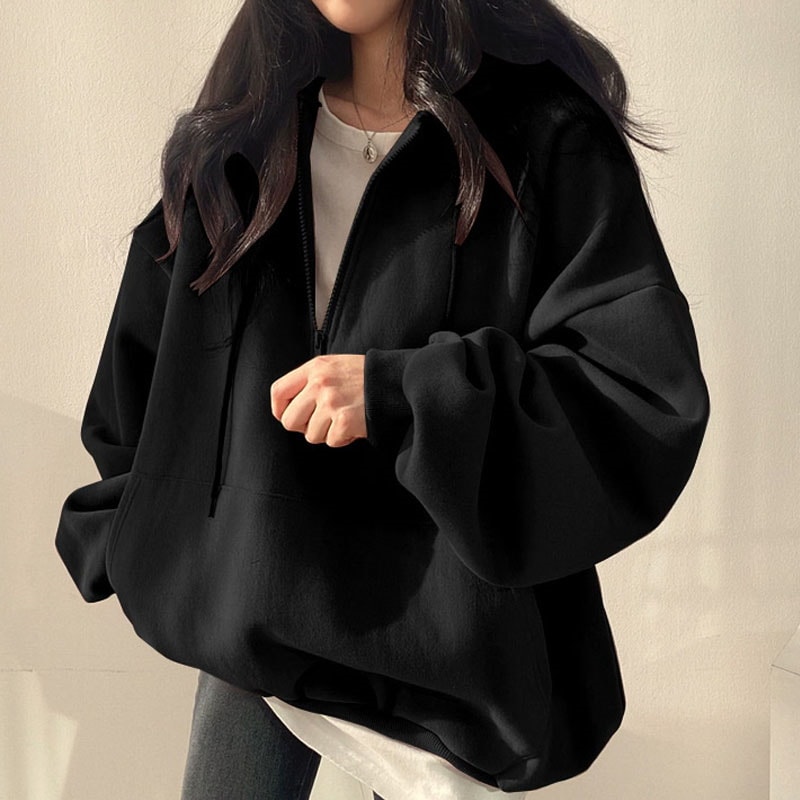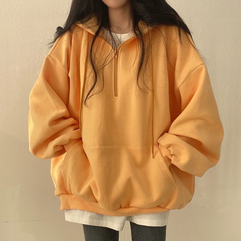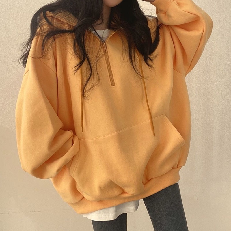 韓国ファッション パーカー レディース ハーフジップ パーカー 無地 韓国 ファッション oversize ゆったり秋コーデ チャック付き カジュアル長袖スウェッ