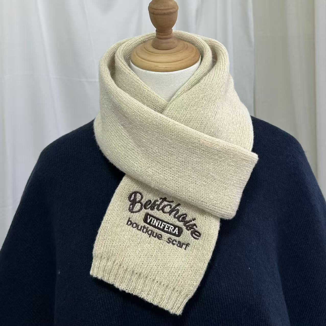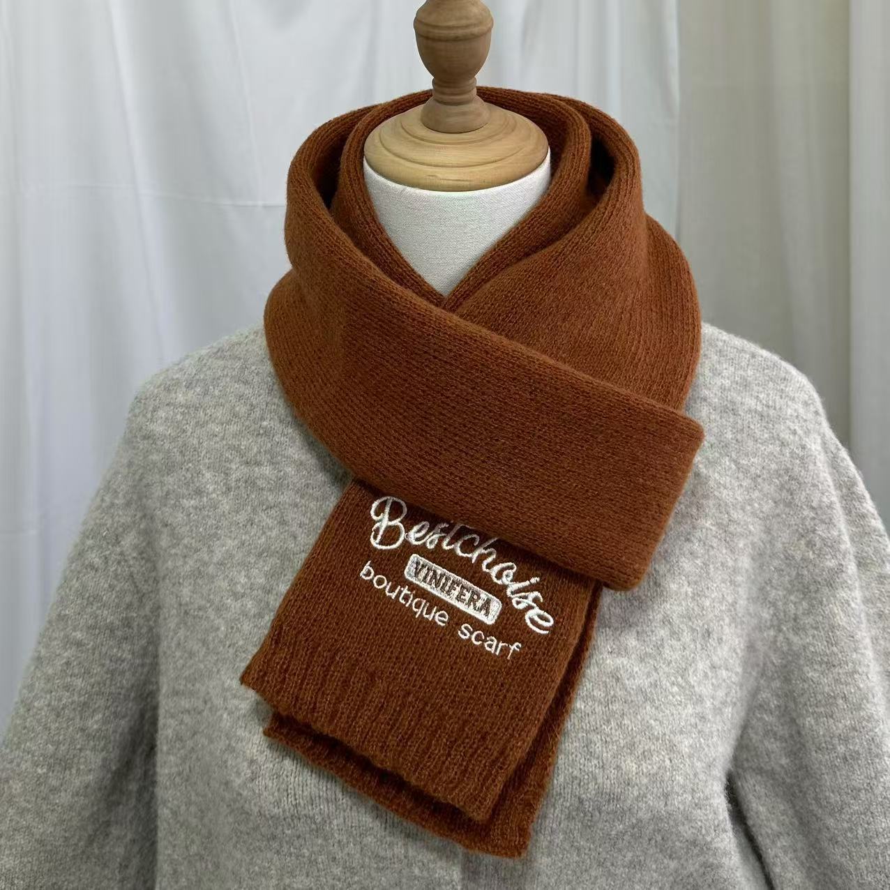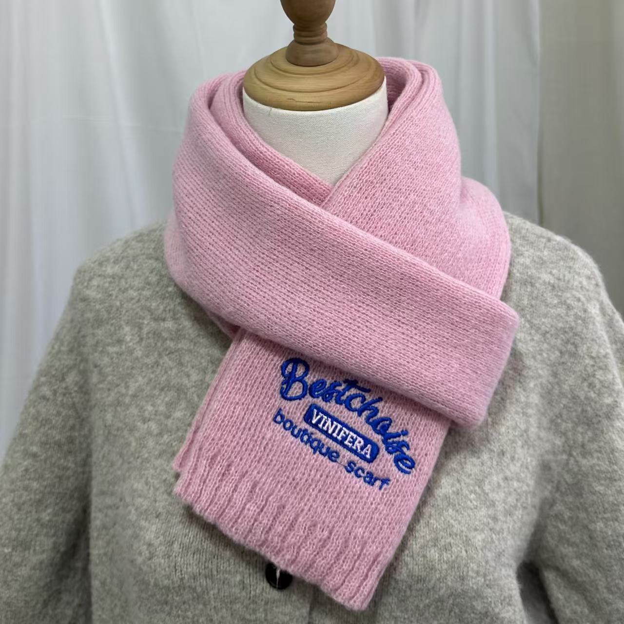 マフラー 刺繍スカーフの女性の冬の学生の暖かいカップルの純粋な色のシニア感覚の韓国語版の2024モデルは小さなスカーフを編んだ スヌード