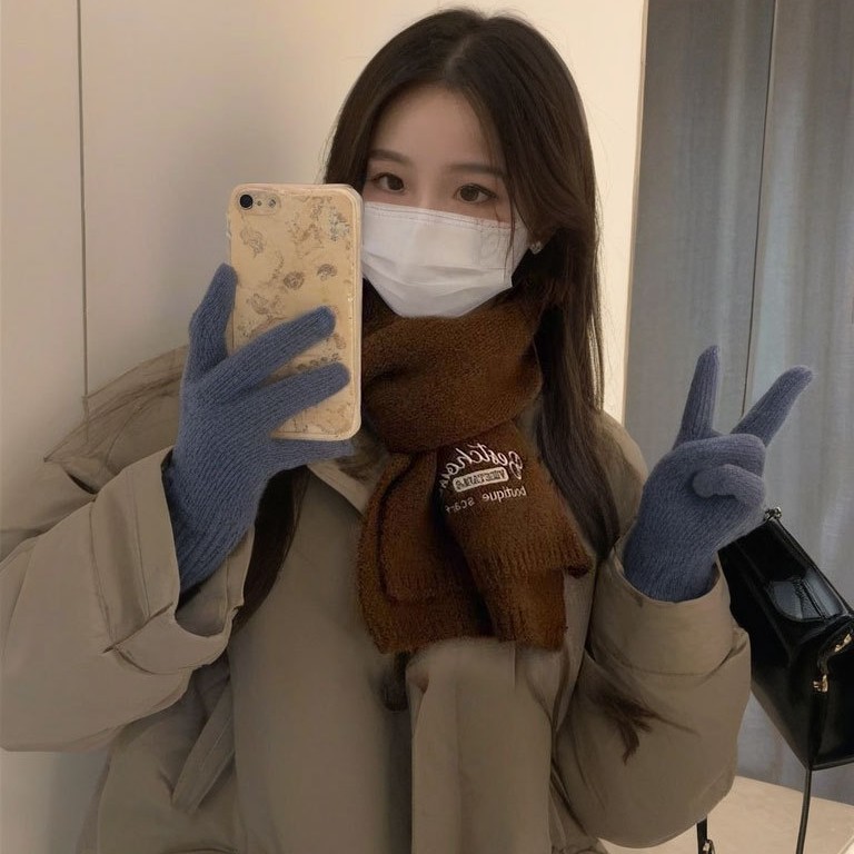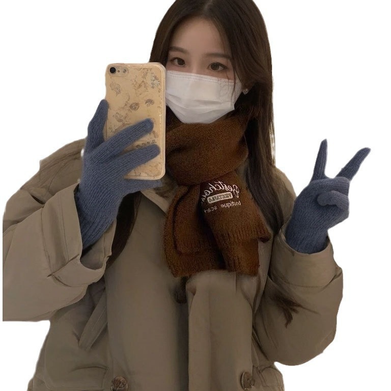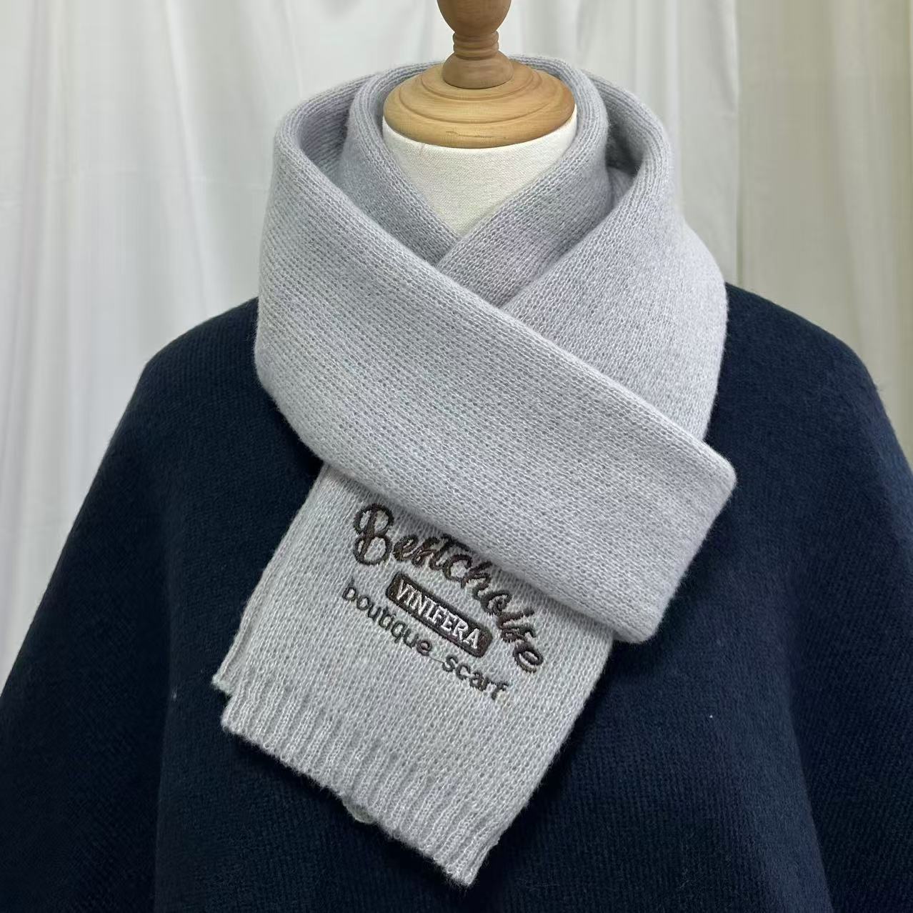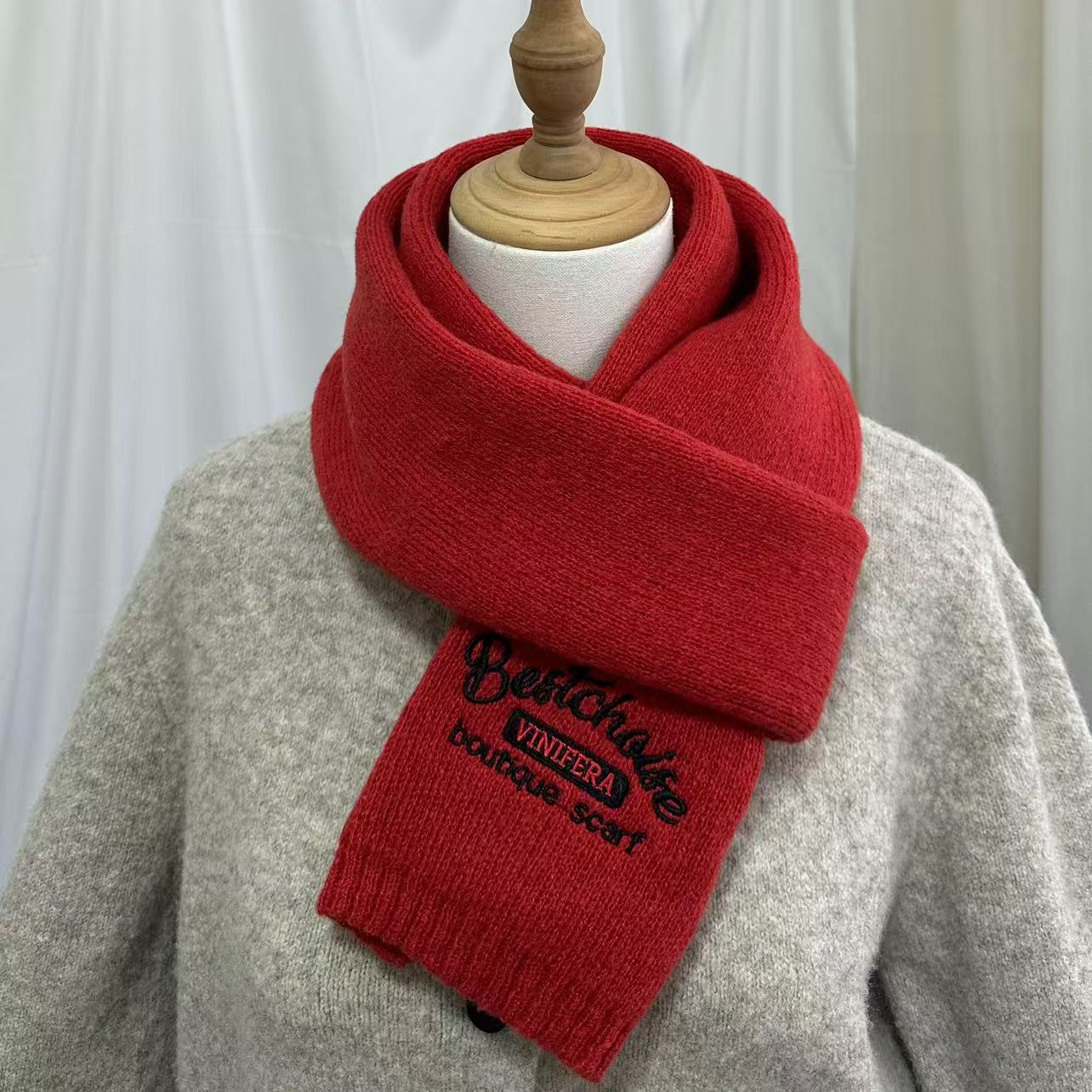 マフラー 刺繍スカーフの女性の冬の学生の暖かいカップルの純粋な色のシニア感覚の韓国語版の2024モデルは小さなスカーフを編んだ スヌード