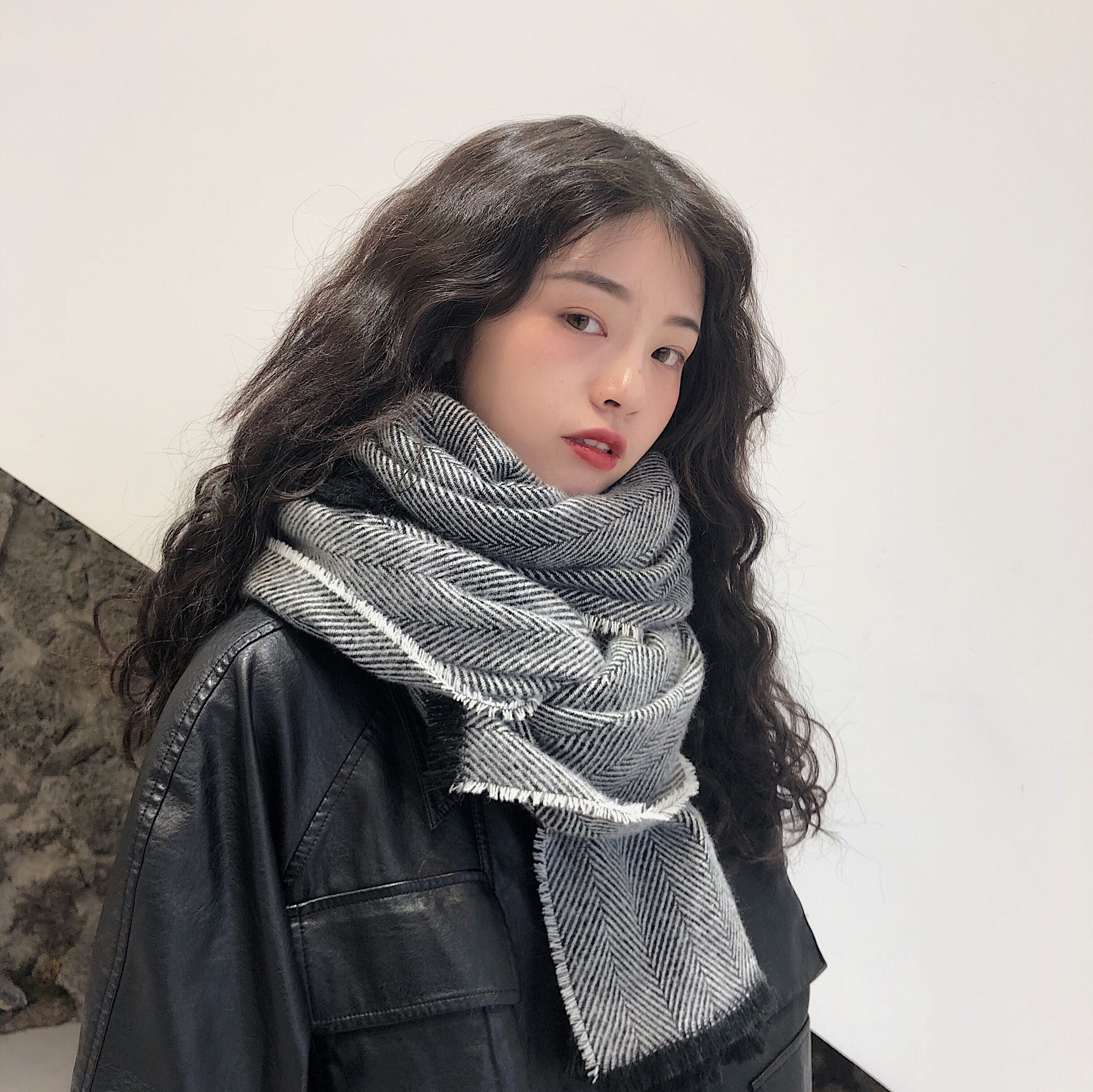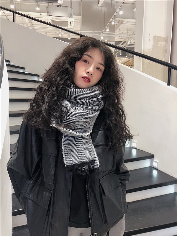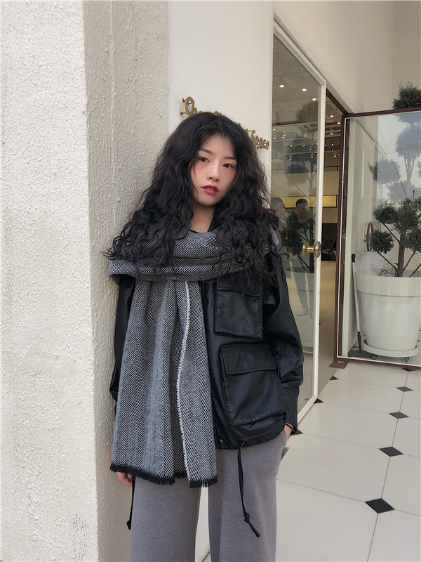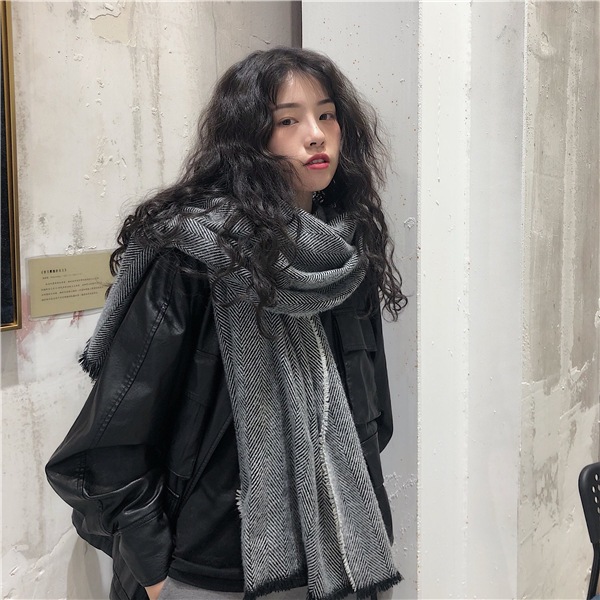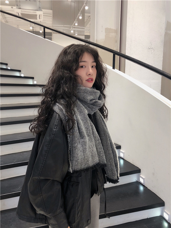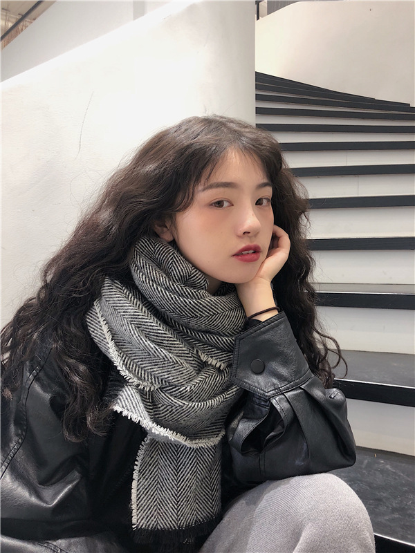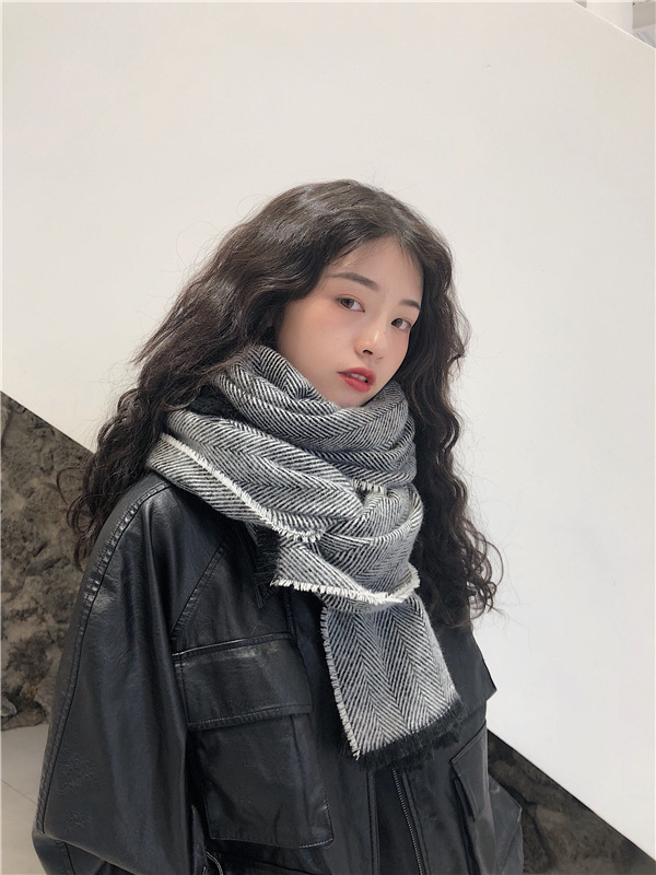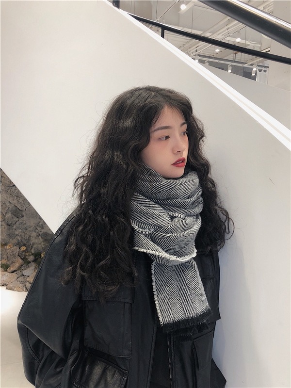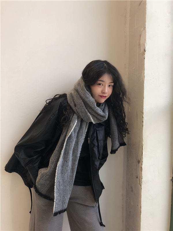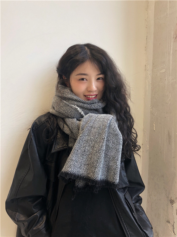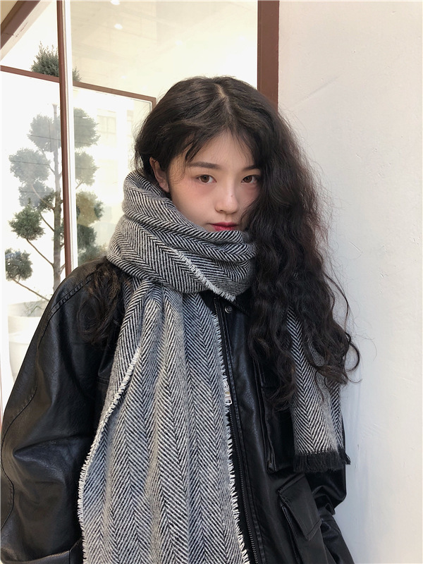 マフラー 新しいヘリンボーンパターンのマフラー女性の冬の長い暖かいマフラー スヌード
