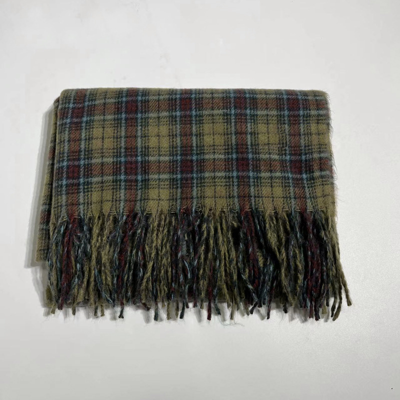 マフラー ヴィンテージグリーンチェック柄マフラーレディース秋冬あったかショールマフラー スヌード