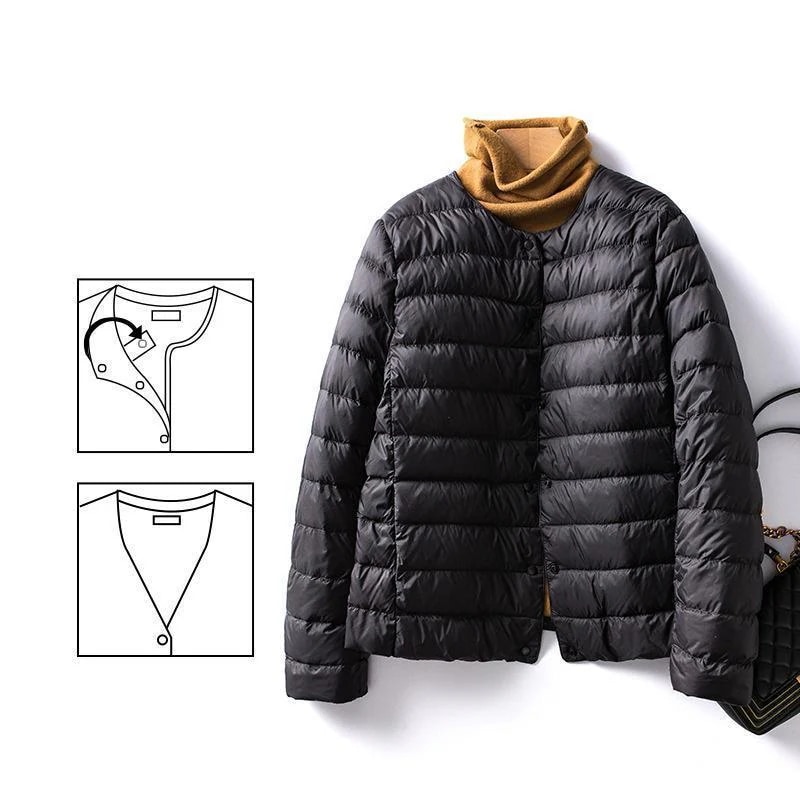 ダウンコート ダウン入り レディース 収納カバー キルティングコート ダウンジャケット 秋冬 ショット丈 軽量 アウター 韓国風 ノーカラー