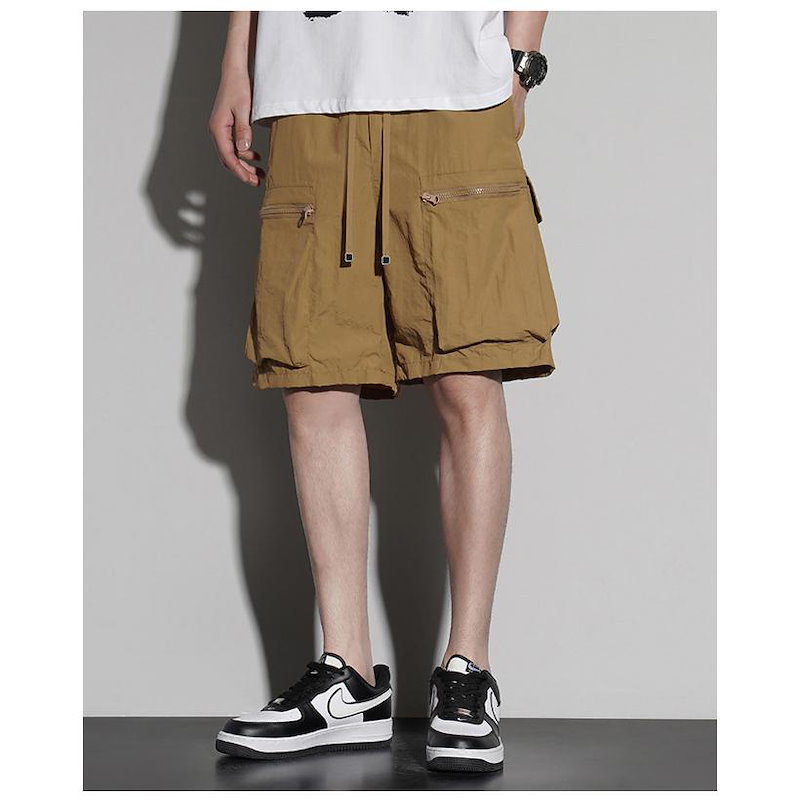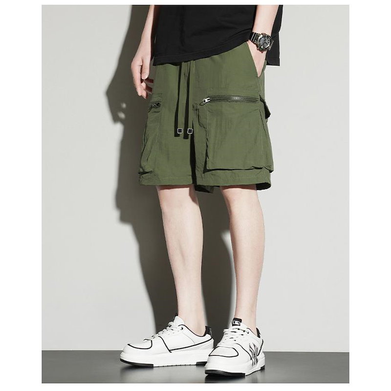 膝丈 ミリタリー ウエストゴム ショートパンツ 速乾 ワーク 接触冷感 カーゴパンツ 短パン リラックス おしゃれ 大きいサイズ 五分丈 薄手 ハーフパンツ メンズ