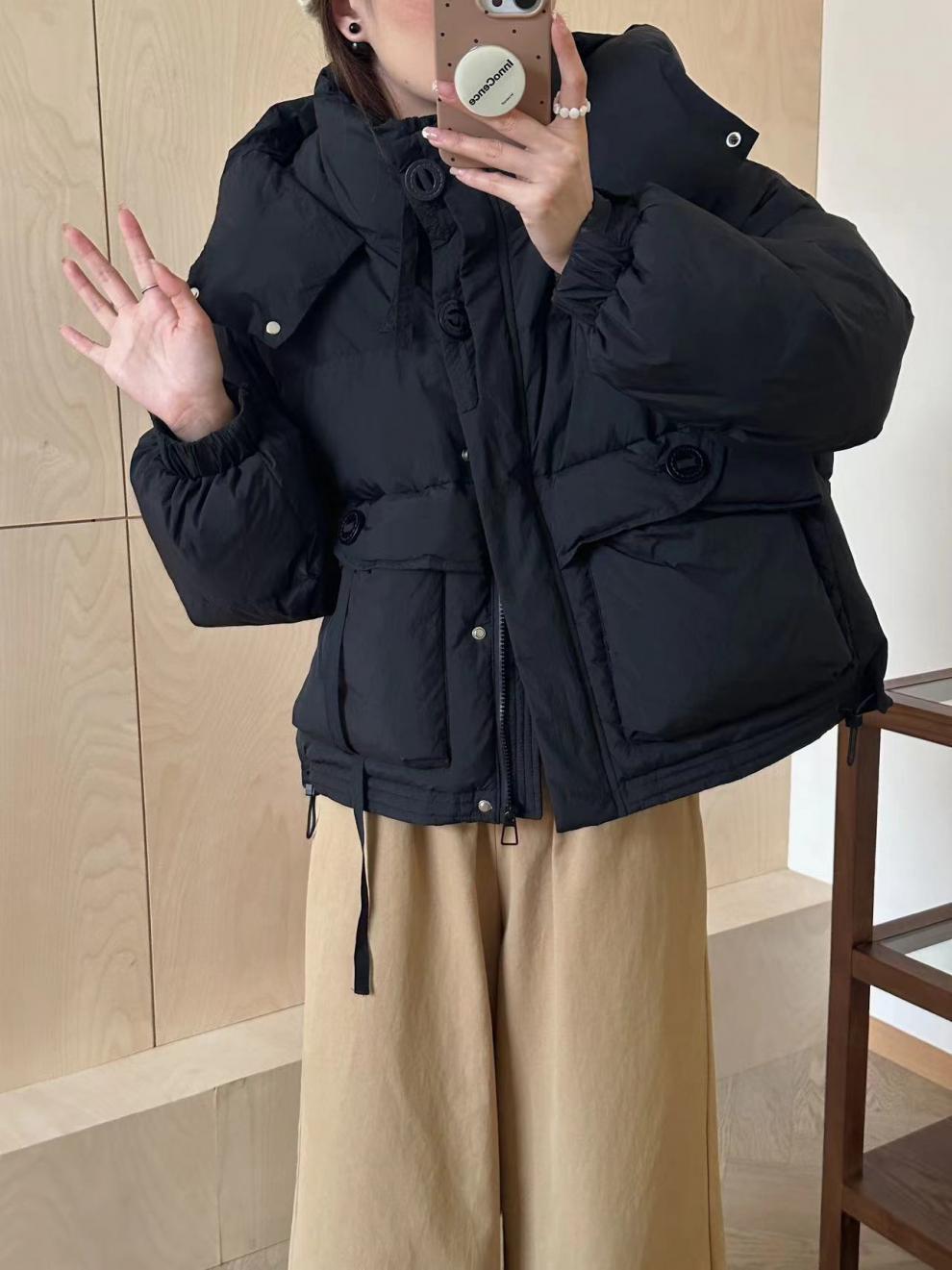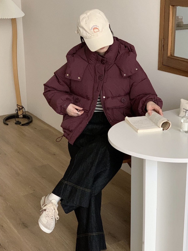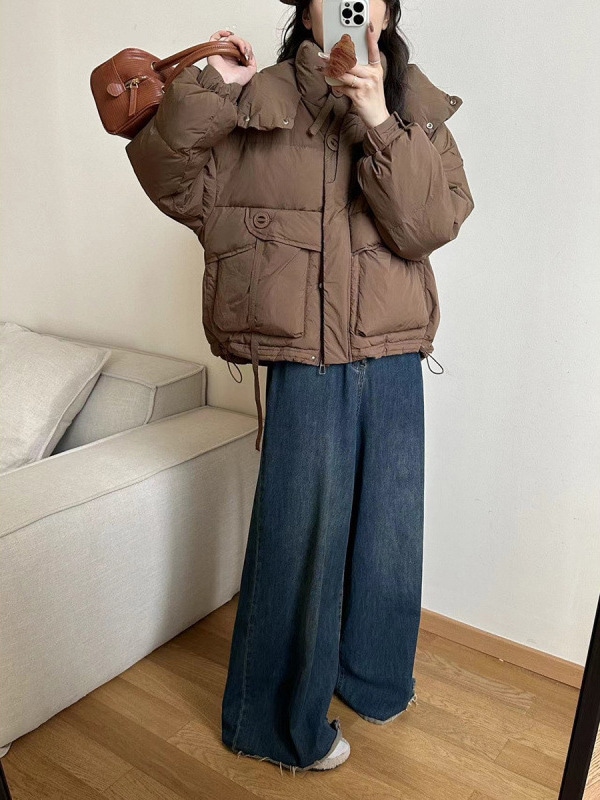 フード付きダウンジャケット女性冬甘いデザインセンスラウンドボタン暖かいホワイトダックダウンパン服 ダウンジャケット コート