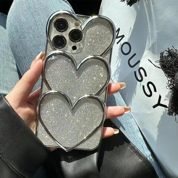 INSで大人気 iphone15 iphone13 iphone14 ケース iphone 15 ケース 可愛い 韓国 キラキラ 14ケース 12ケース 13 ケース ハート シルバー おしゃれ カ