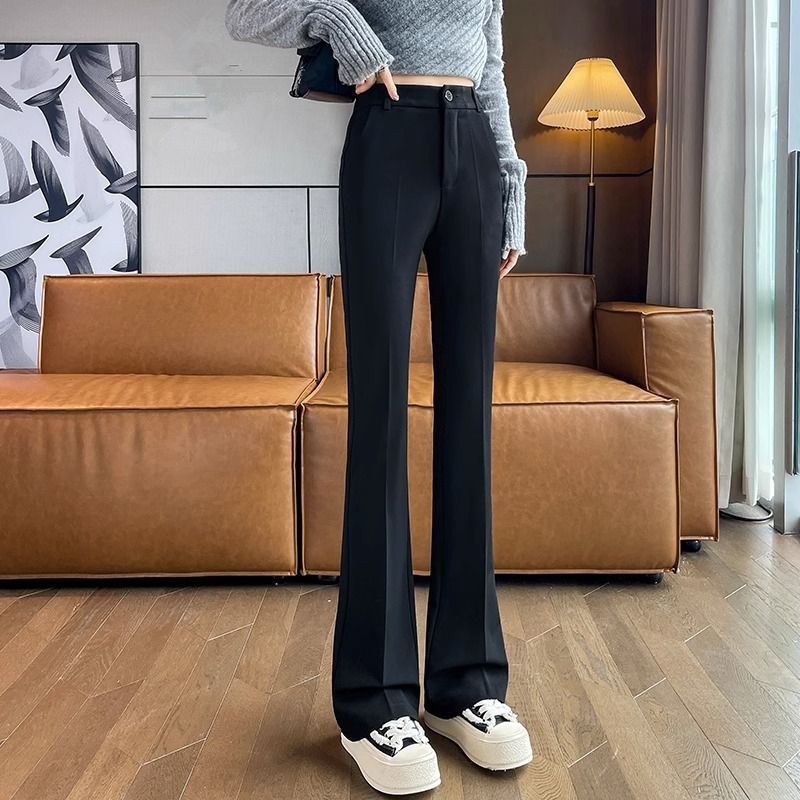 ズボン黒ブーツカットパンツ2024新スタイルハイウエストスリムドレープカジュアルパンツフレアスーツフロアレングスパンツ ロングパンツ