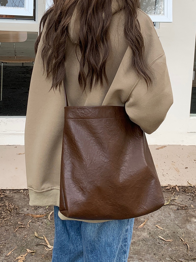 のんびり大容量トートバッグ女性新しいファッション通勤ソフトレザーバケットバッグ大学生クロスボディショルダーバッグ ショルダーバッグ