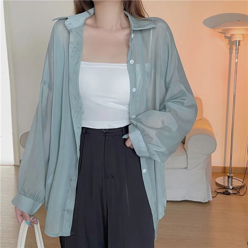 2枚2OO円OFF シアーシャツ シフォンブラウス UVカット ブラウス レディースひんやりロングシャツ ン薄手サマーシフォンシャツ tシャツ レディース長袖 日焼け止め 冷房対策 光沢感
