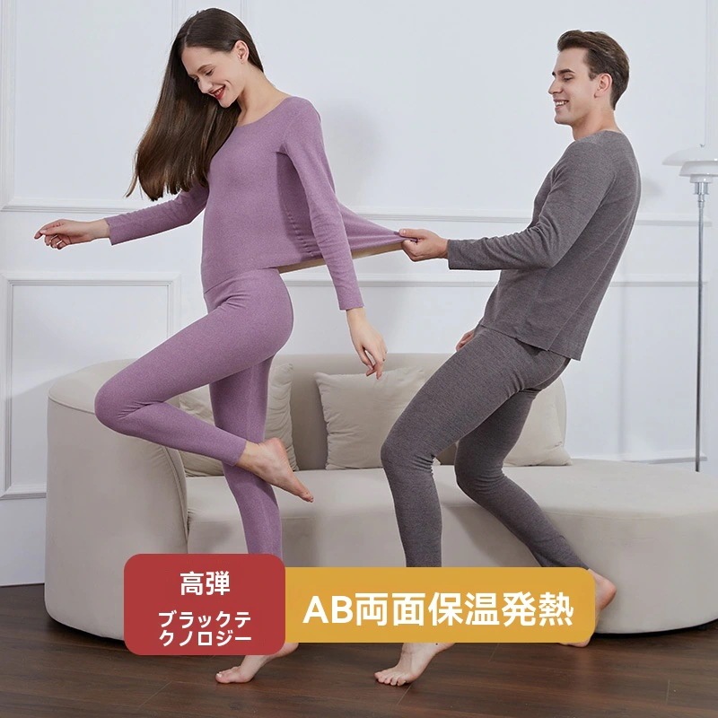 2点セットメンズファッション レディースパジャマ 保温 インナー レディース 肌着 ルームウエア 長袖 伸縮性高 ヒートテック 暖かい パンツ 少し裏