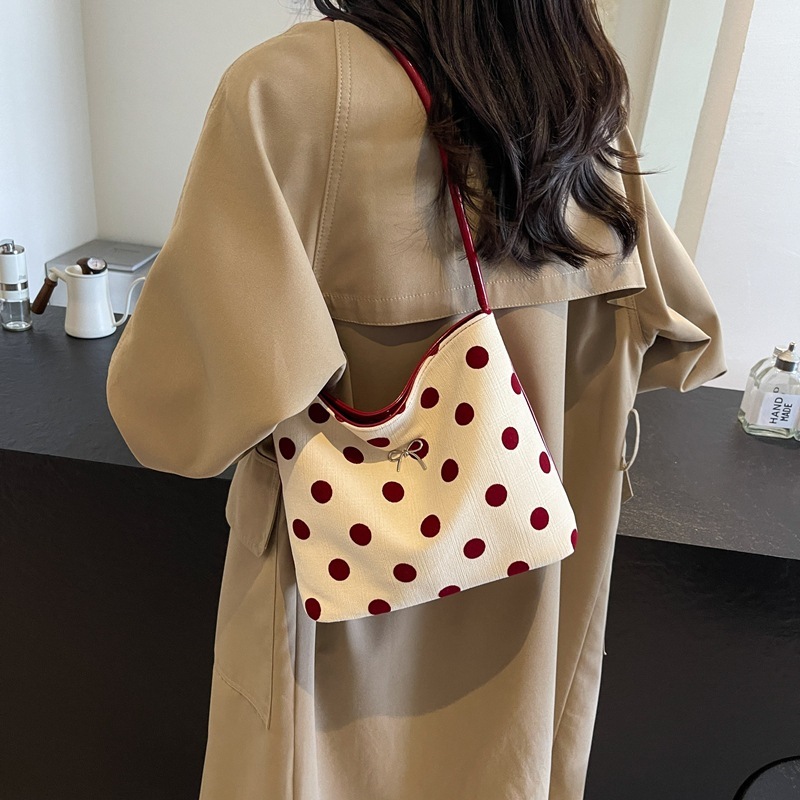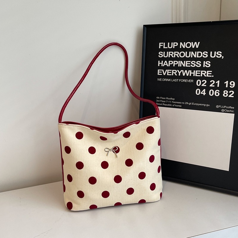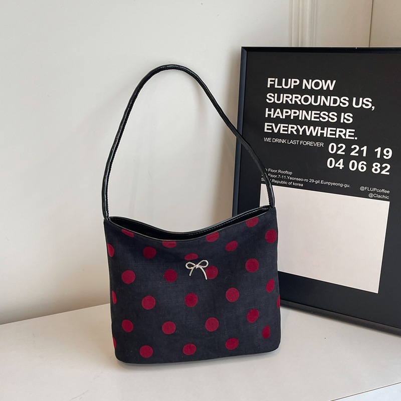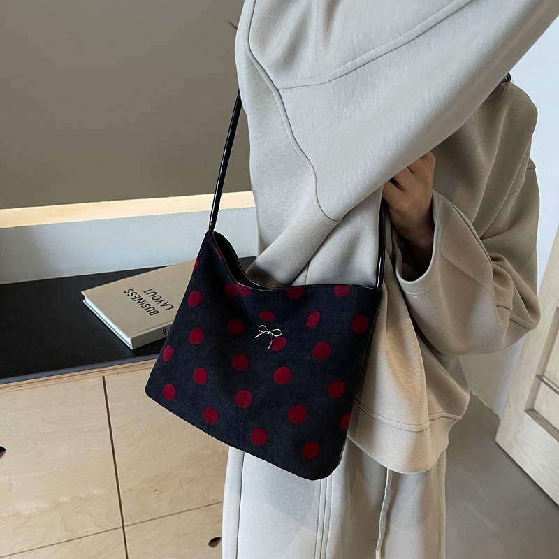 小衆波点帆布バケツ小包女2024新百合片肩腋の下包外出小包 ハンドバッグ