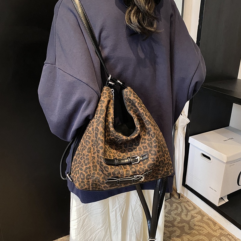 秋に流行したヒョウ柄の大容量ランドセルバッグ女性2024新百合斜めショルダーバッグカジュアルショルダーバッグ ハンドバッグ