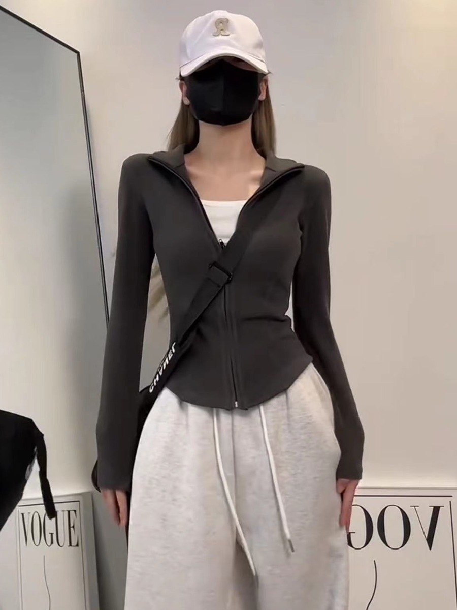 リバーシブルのダウンに厚手の保温スタンドカラーのパーカーTシャツ女性冬ギャルフィットインナージッパーボトムトップス Tシャツ カットソー