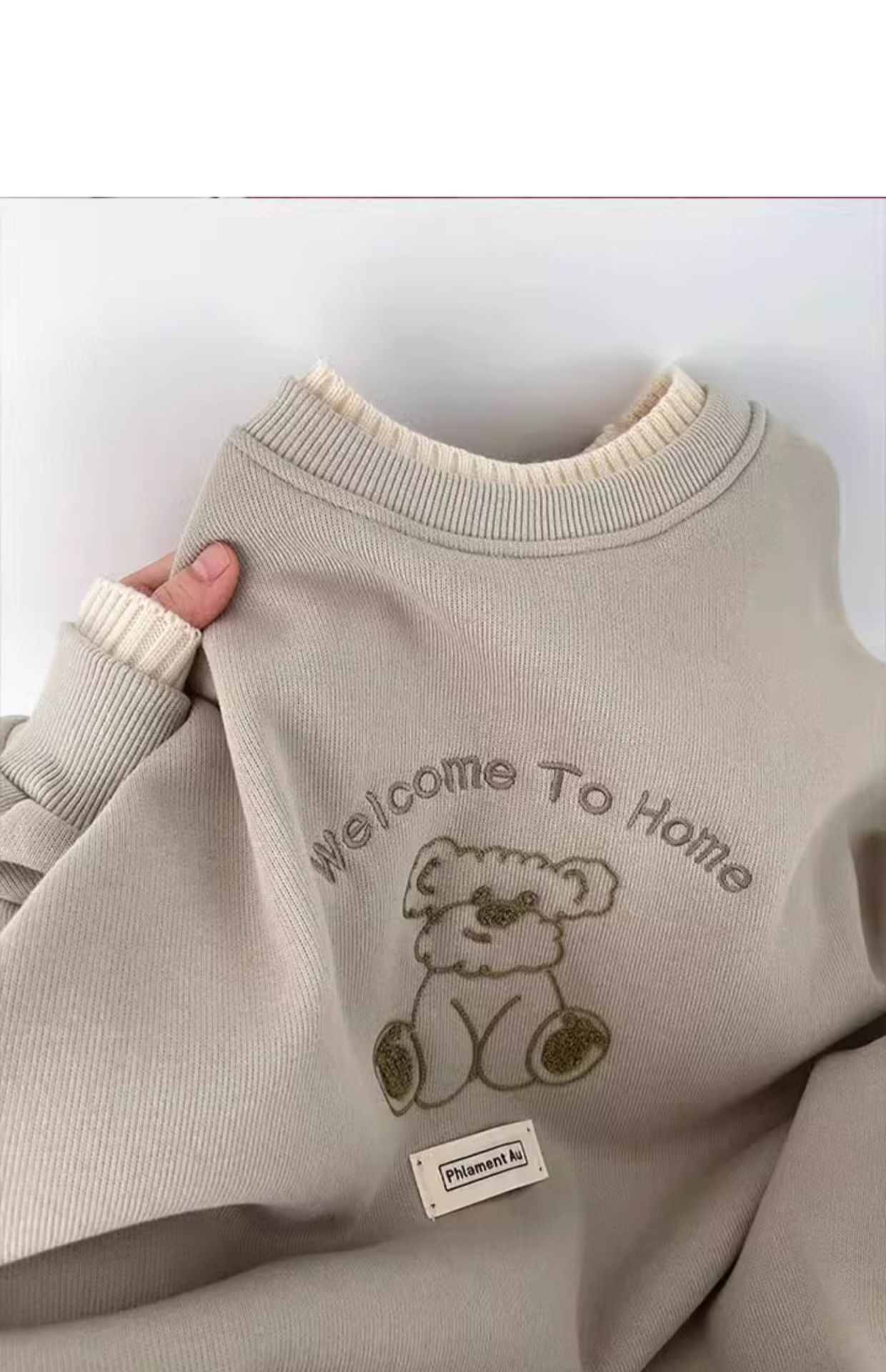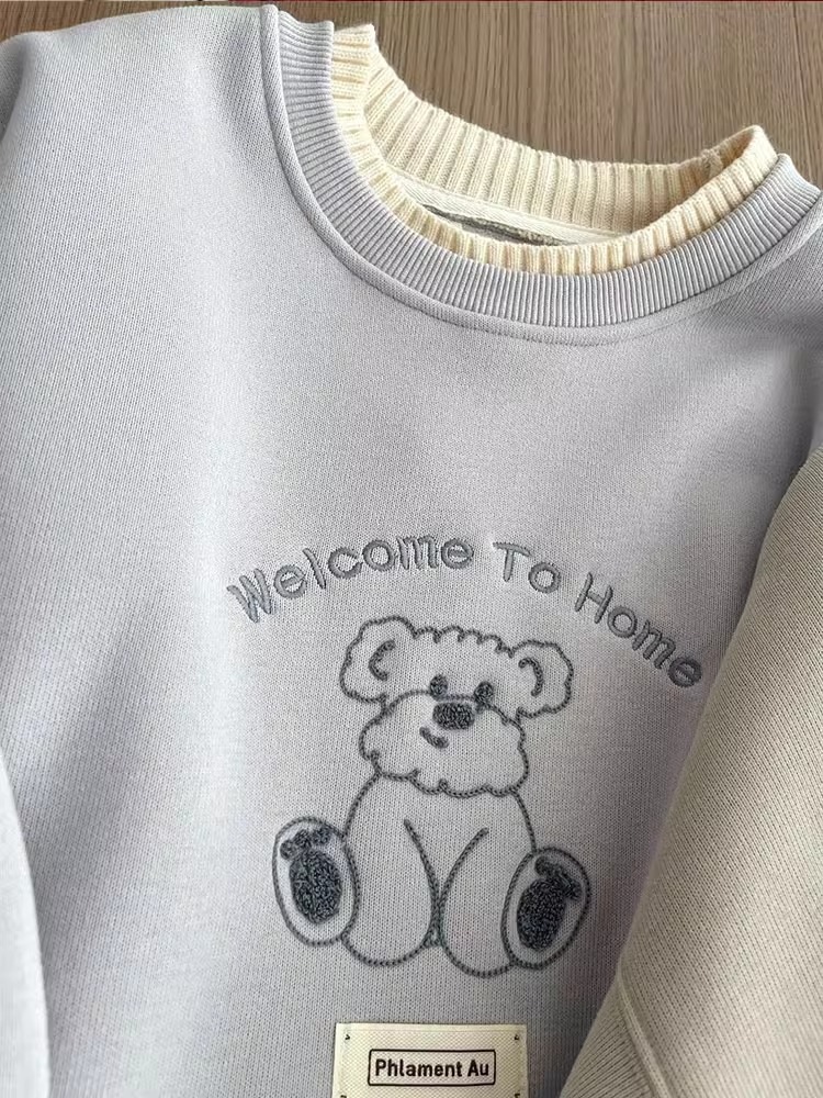 秋冬の新爆金小柄ダウンに厚手の子グマ刺繍柄偽2枚の丸首衛衣女 Tシャツ カットソー