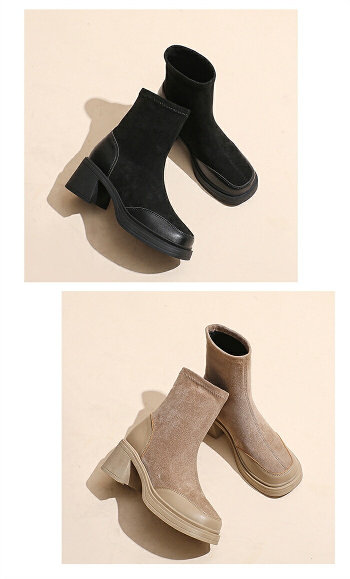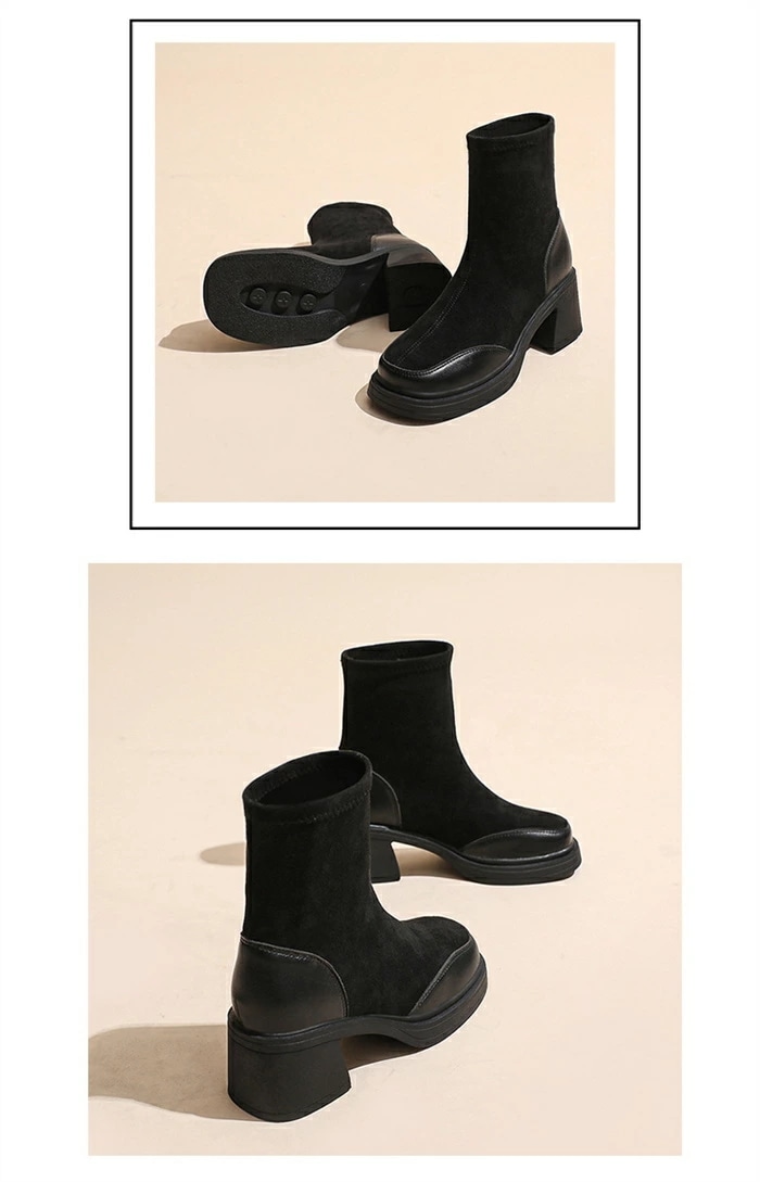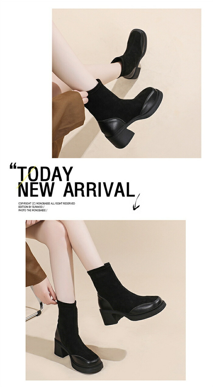 ブーツ ショートブーツ レディース 歩きやすい ジョッキー ハイヒール 疲れない ミドル丈 黒ブーツ ファスナー 美脚 ストレッチ カジュアル ハイヒールブーツ ハイヒール靴 厚底 ミドルブーツ 女性