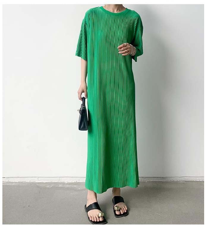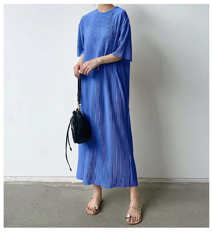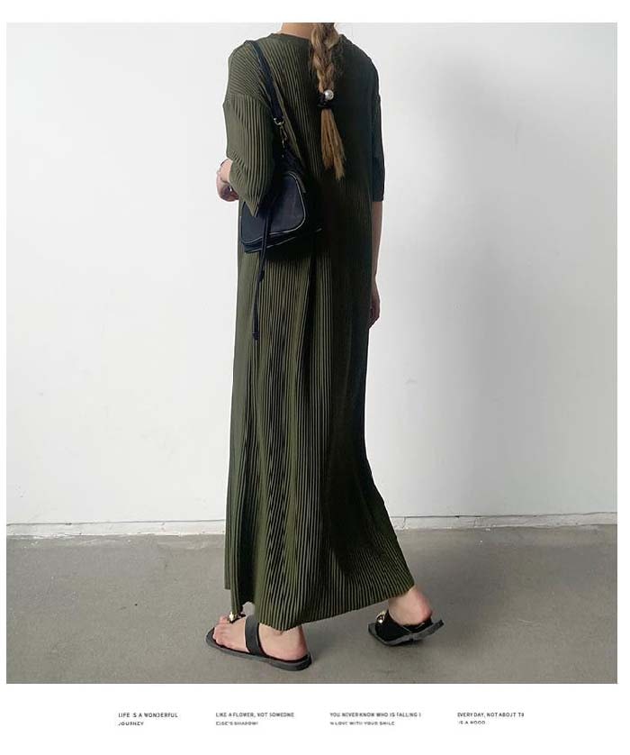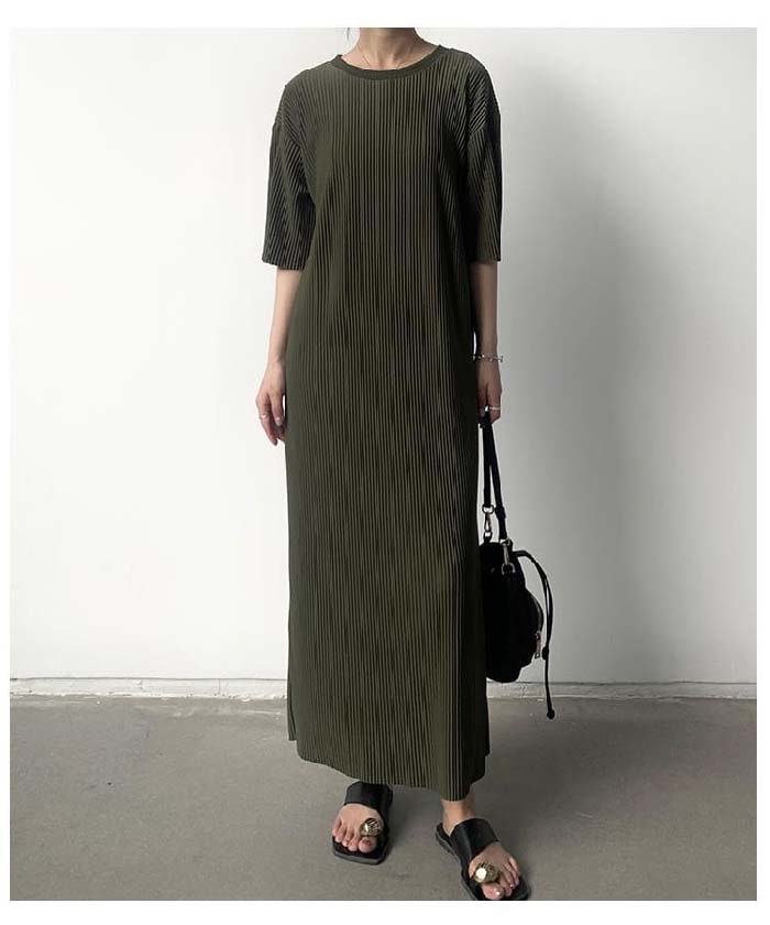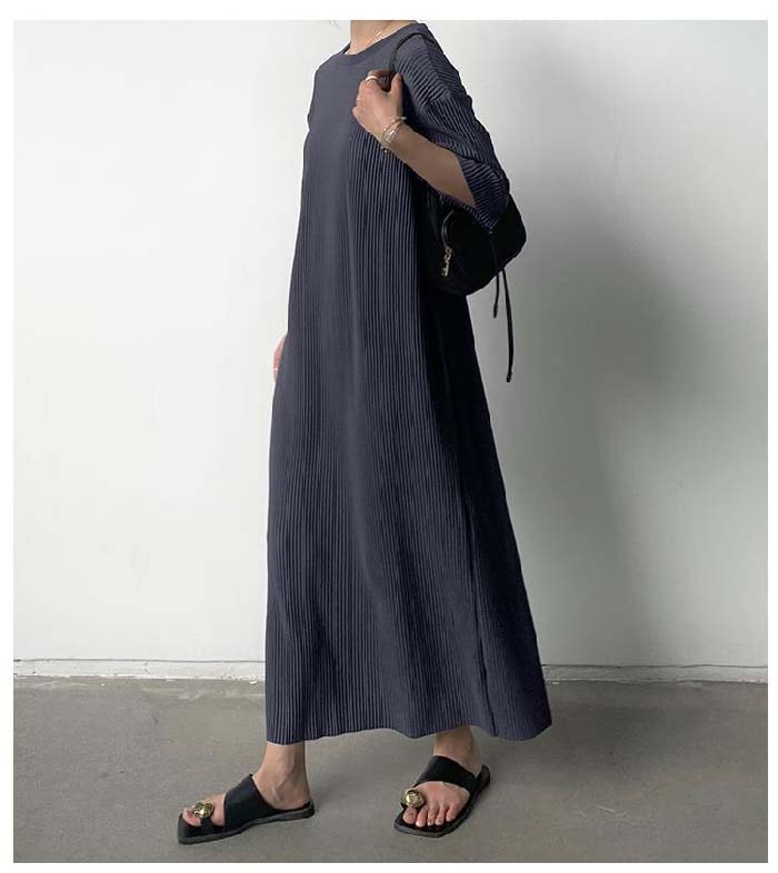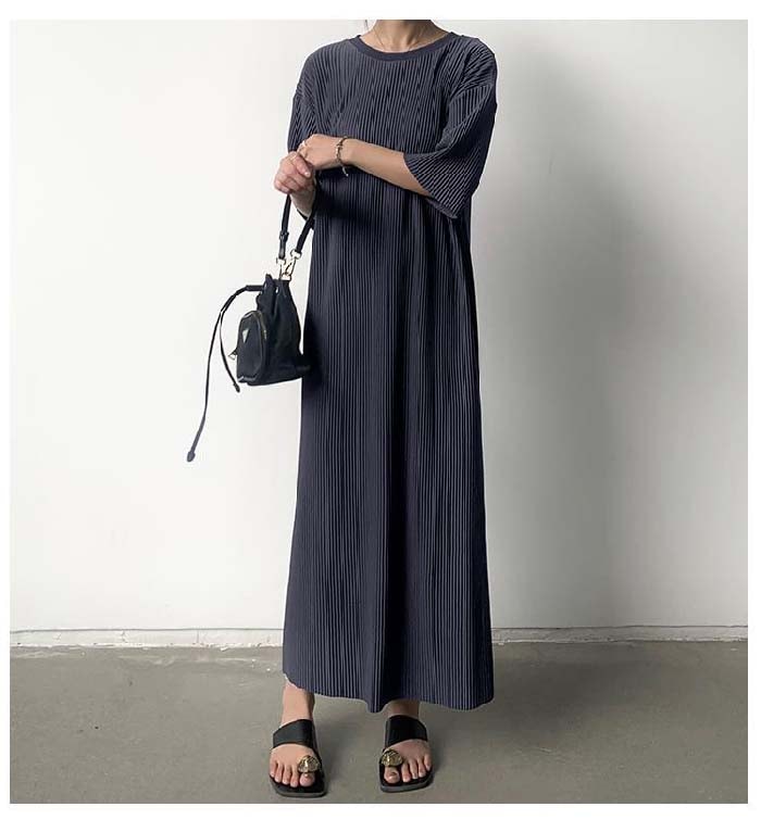 ワンピース 春 夏 秋 レディース 半袖 プリーツワンピース きれいめ ロング丈 大きいサイズ ゆったり 体型カバー プリーツ ワンピース ブラック お洒落 着痩せ シンプル カジュアル ゆるっと ビ