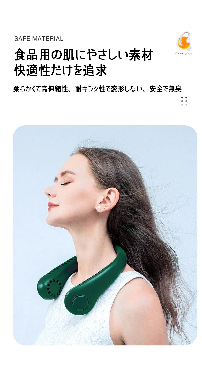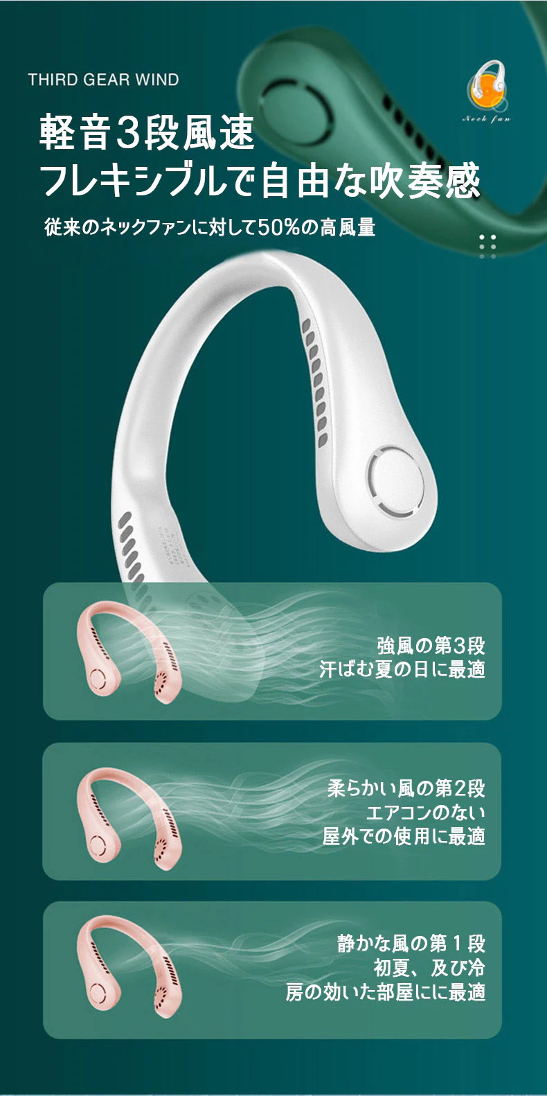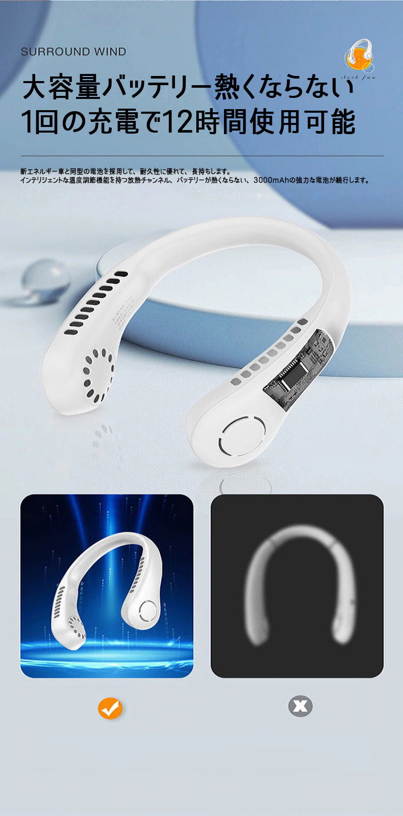 首掛け扇風機夏季節家電USB充電持ち運び便利三段階風量調節熱中症対策