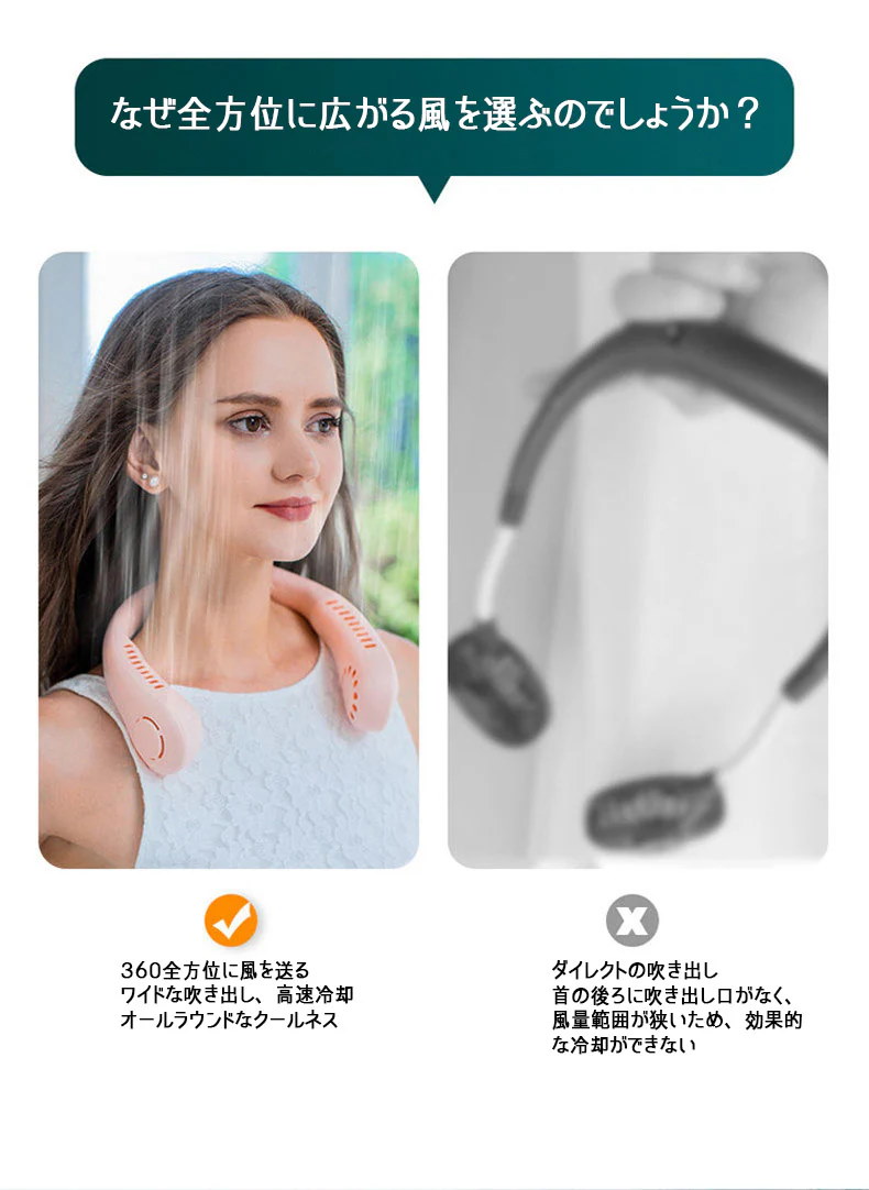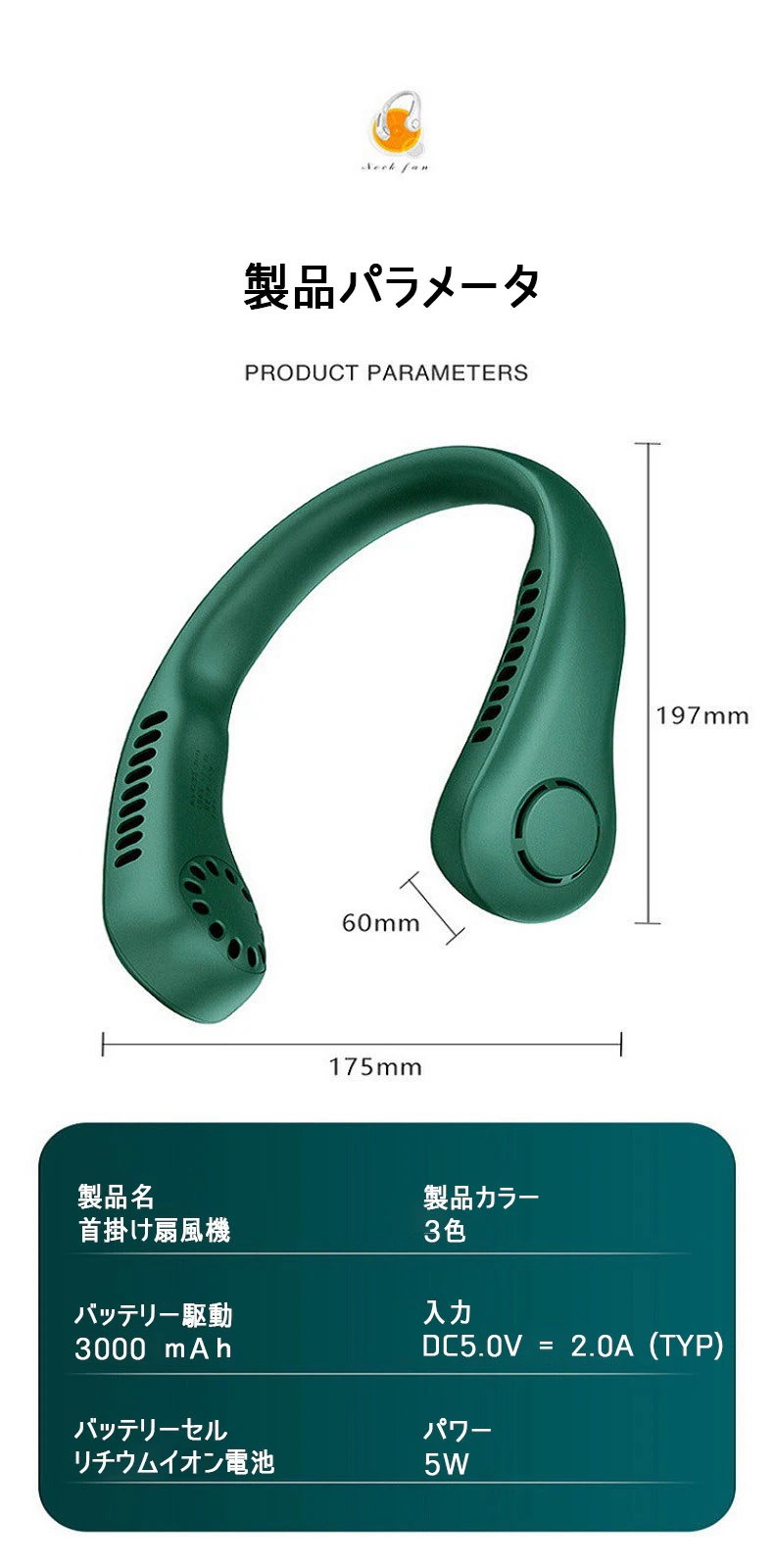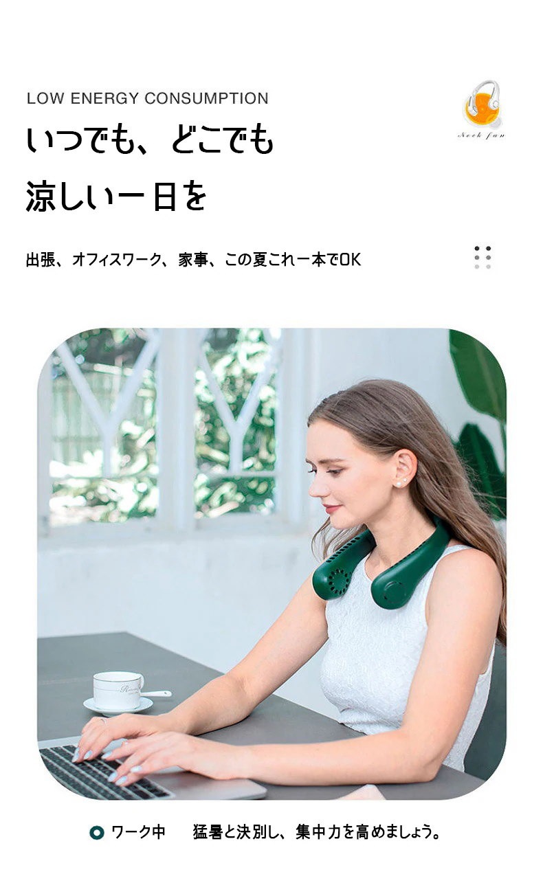 首掛け扇風機夏季節家電USB充電持ち運び便利三段階風量調節熱中症対策