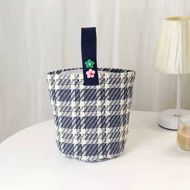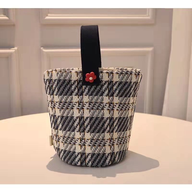 ファッションシンプルチェック柄韓国キャンバスバケットバッグカジュアル多用途ママバッグ厚みのあるランチボックスバッグハンドバッグ ハンドバッグ
