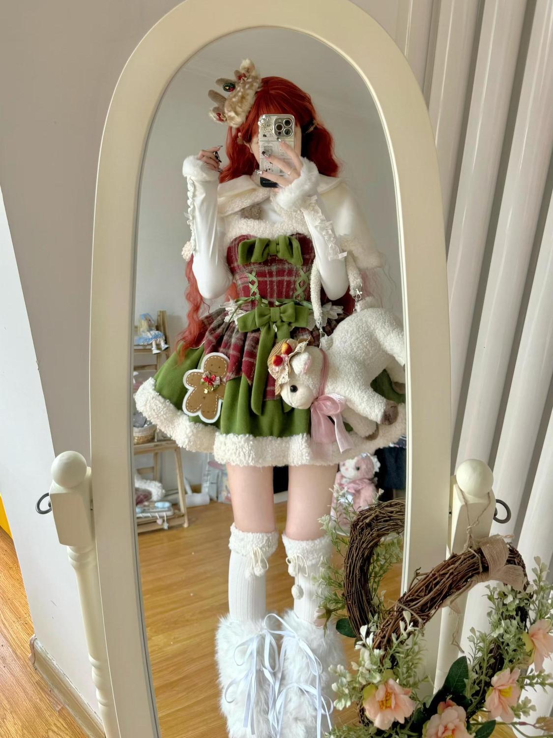サンタコスプレ 秋冬 スウィート クリスマス ドパミン かわいい 力仕事 ボトムス ポンチョ ジャケット ホルタードレス 三点セット韓国