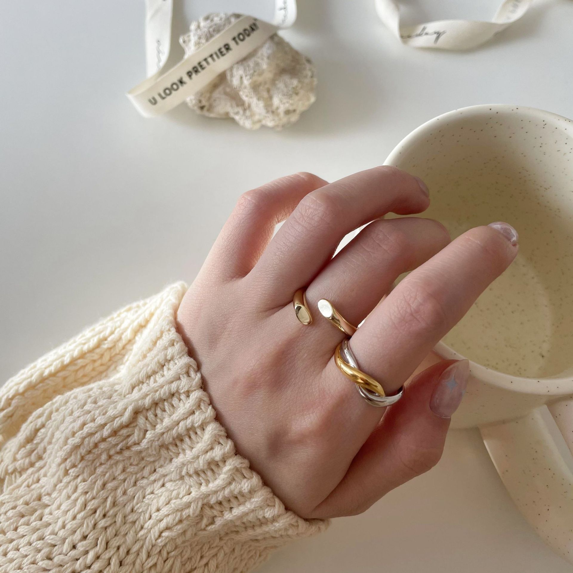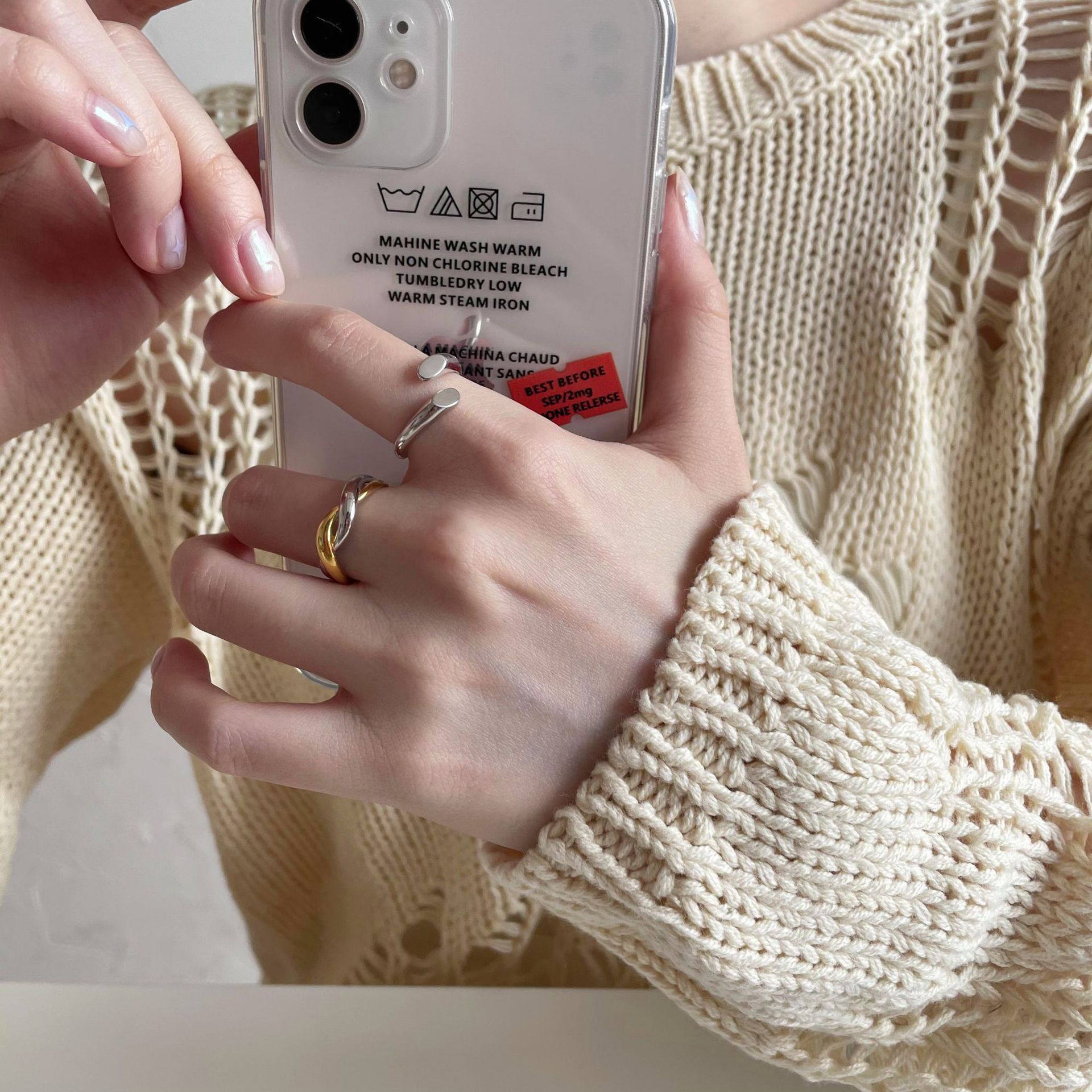 指輪 韓国 コラージュ シンプル リング レトロ サイズ調節 小人数デザイン ペアリング キラッとリン 指輪