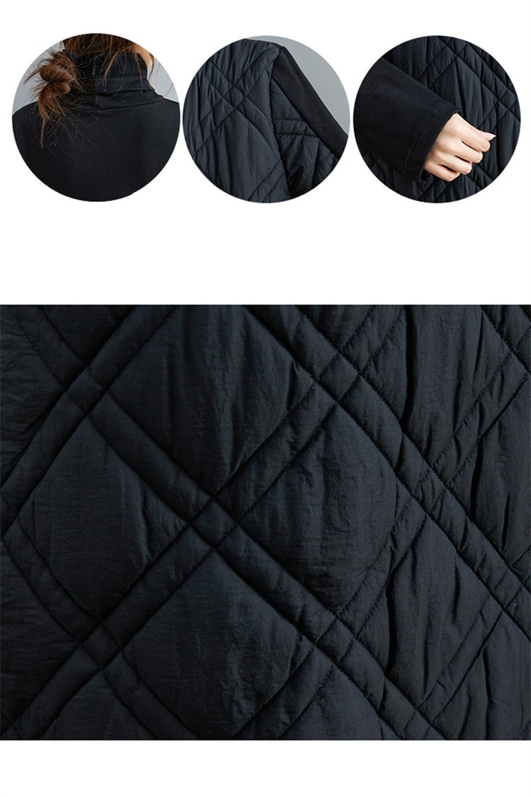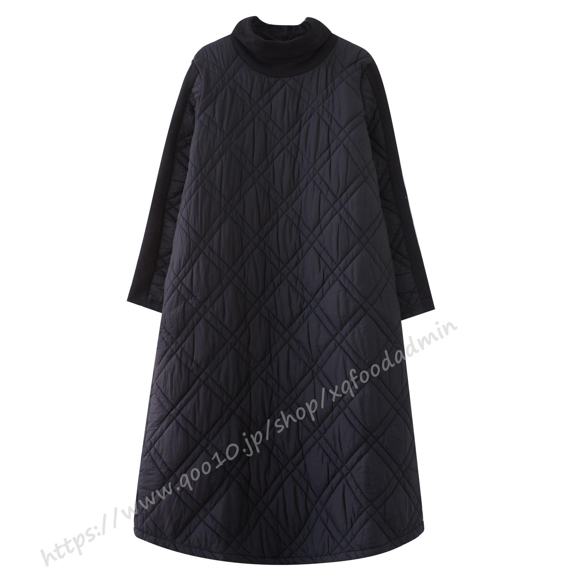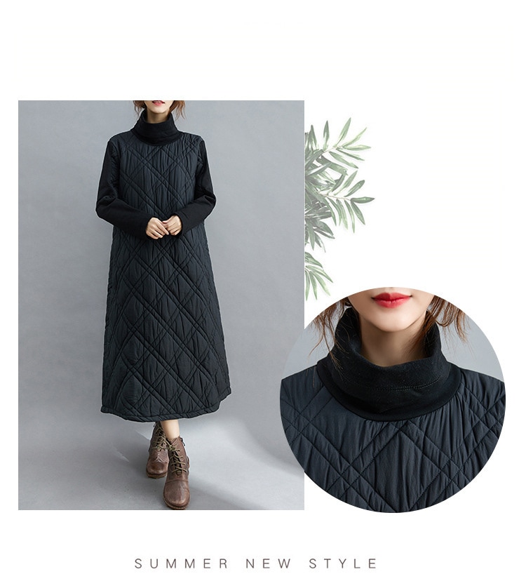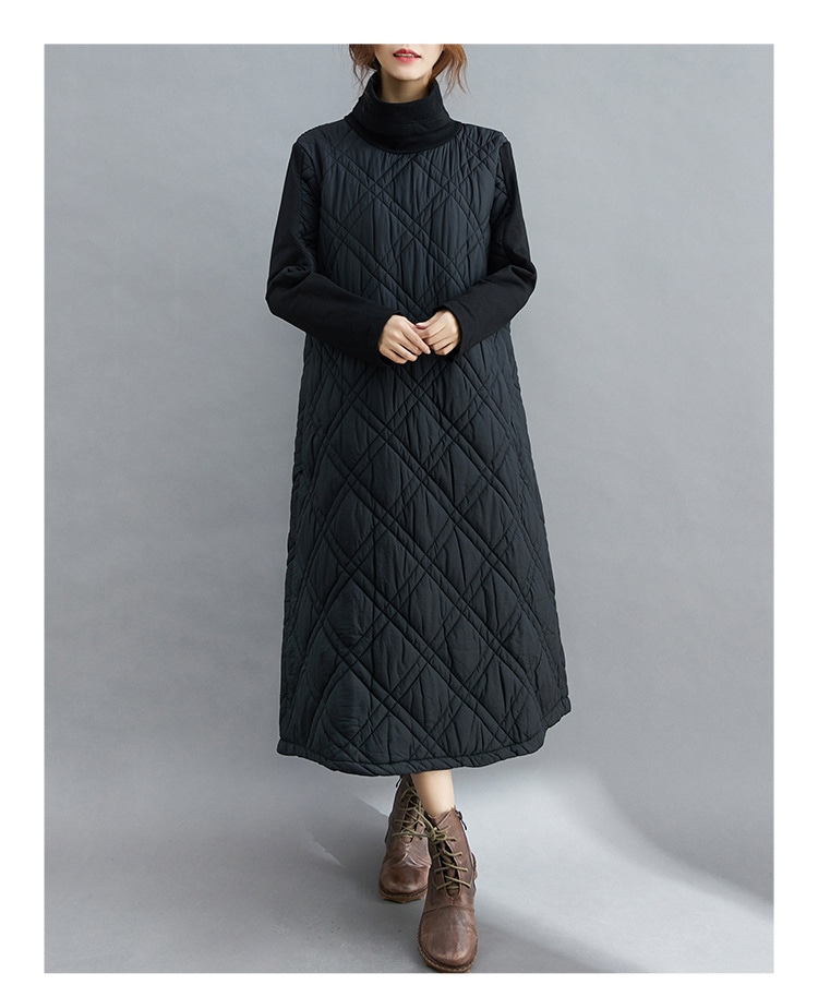 キルティング カジュアル ワンピース 黒 40代 秋 マキシワンピース 切り替え 長袖 秋冬 冬 厚手 ロングワンピースハイネック 軽量 防寒 タートルネック ポッケト付き 中綿ワンピース キルティン