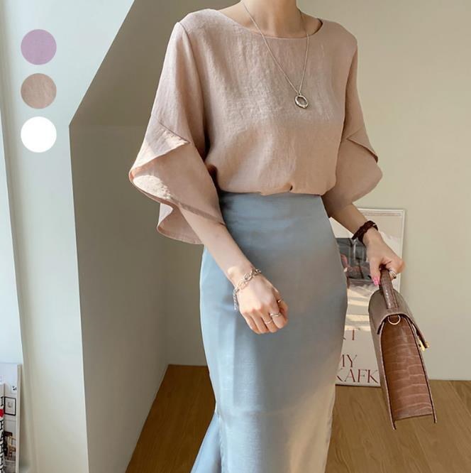 大人気 フレア袖ブラウス Tシャツ 可爱い ゆったりしたTシャツ レディース Tシャツ 無地レース