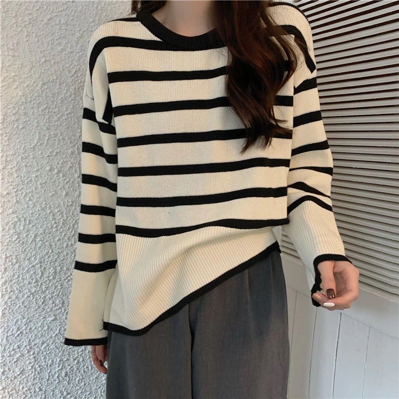 早秋新作 ニットトップス ニットハイネック ストライプセーター ハイネック上着 ゆったりフ レディース純色 長袖 無地 ニット
