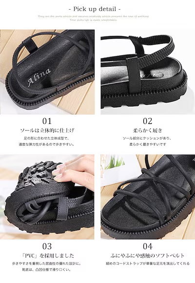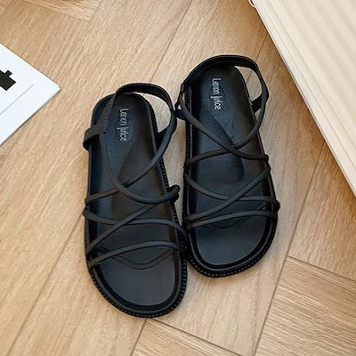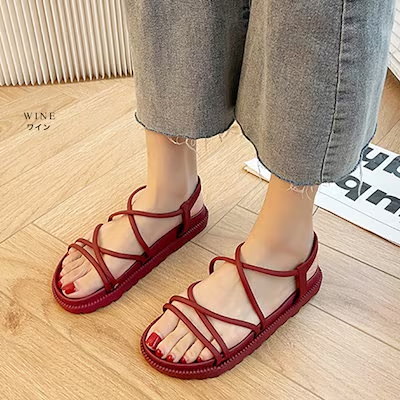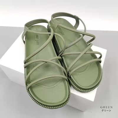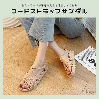 美脚サンダル 歩きやすい 履きやすい 厚底 コードストラップ アンクルストラップ シンプル レディース サンダル