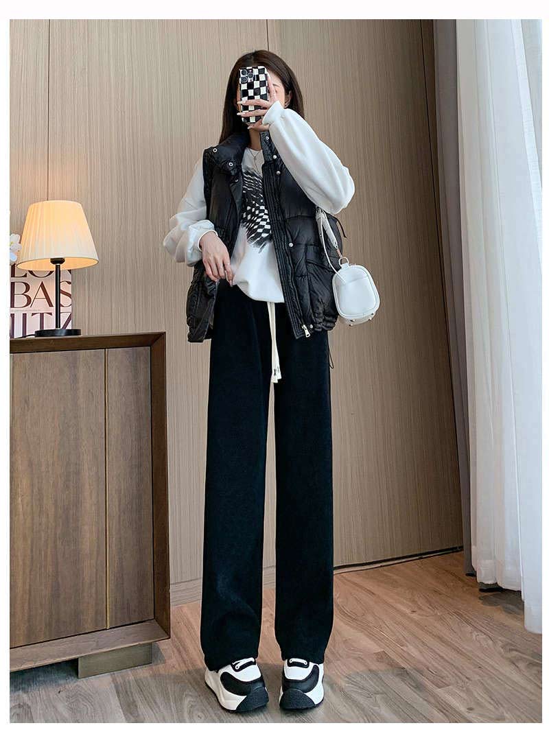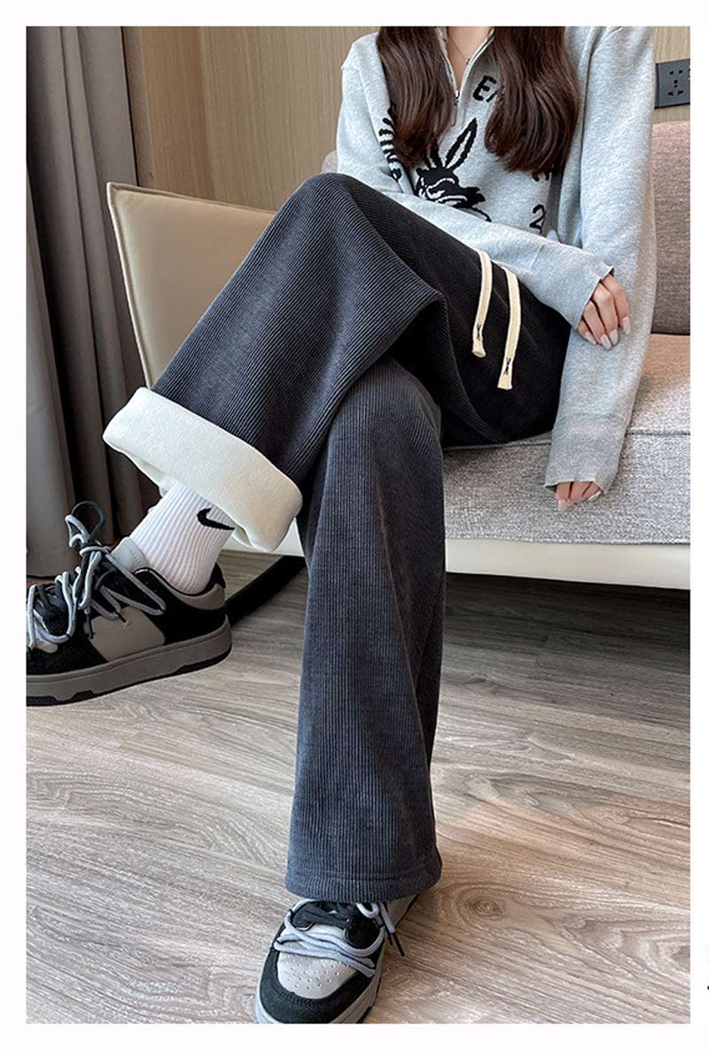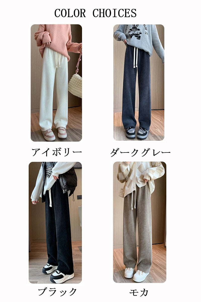 コーデュロイ ワイドパンツ 裏起毛 レディース 秋冬 パンツ ロング ウェストゴム ストレートパンツ リボン ハイウエスト 高身長 低身長 ロングパンツ コーデュロイパンツ 暖かい 防寒 イージーパン