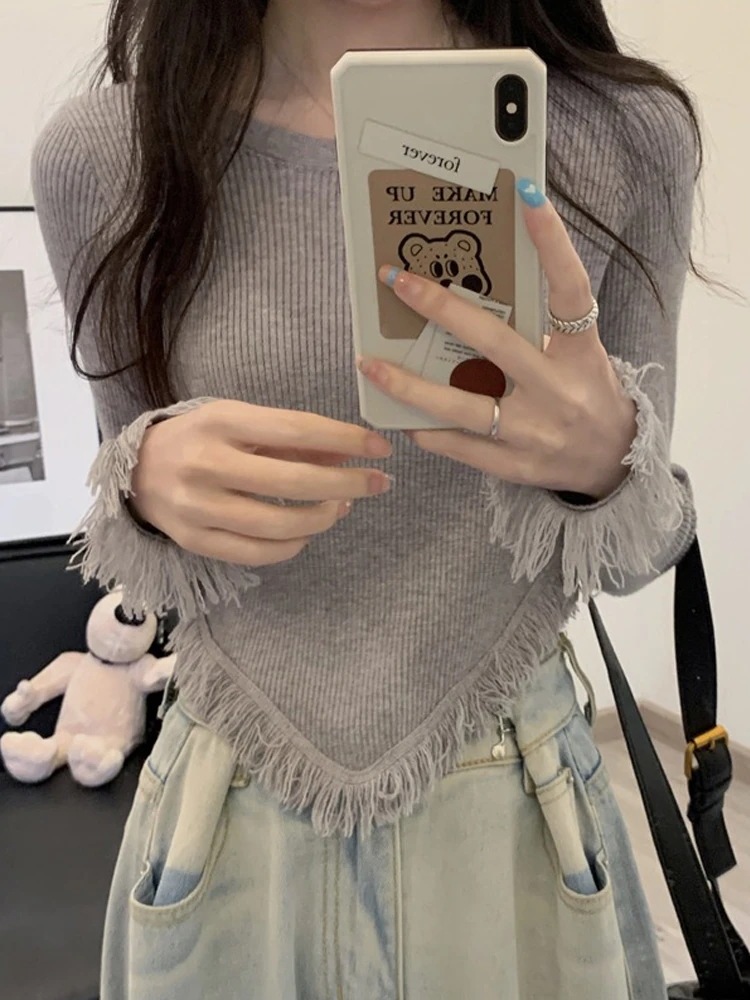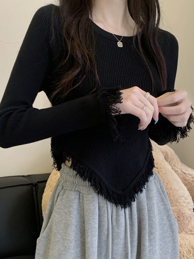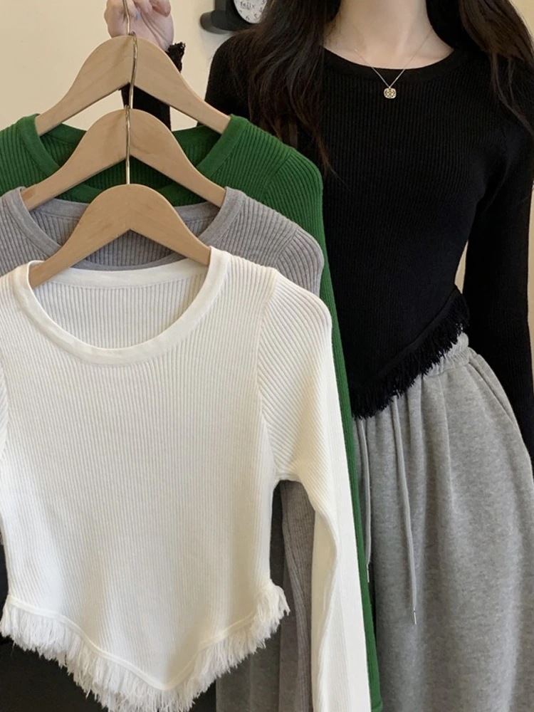 長袖ニットトップス女性2023新しいスリムグリーンインナーボトムシャツニッチプレミアムフィーリングセーター ニット