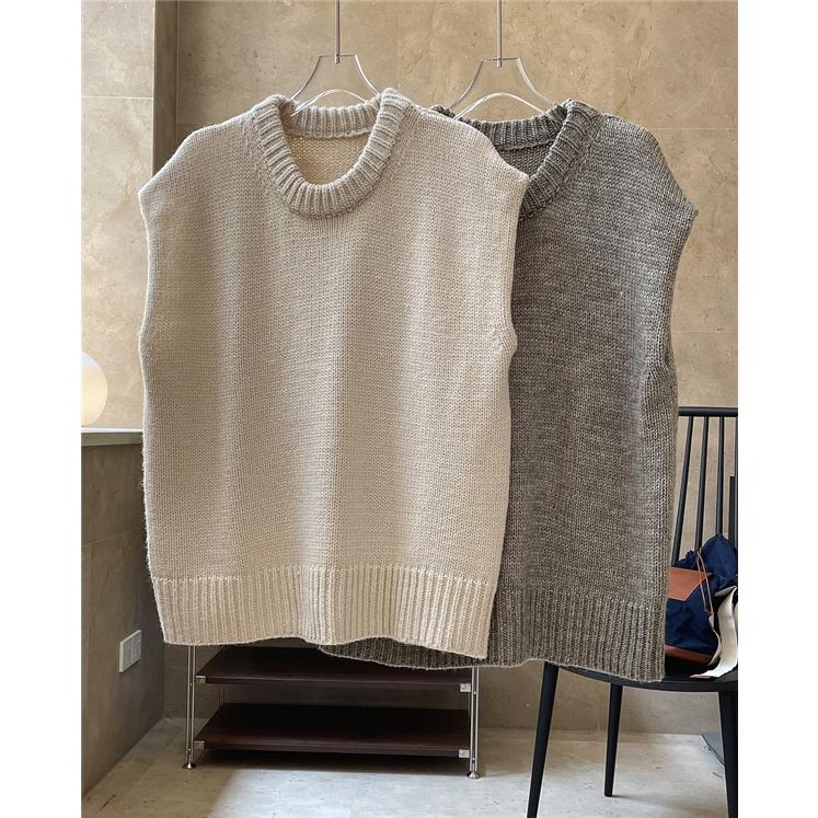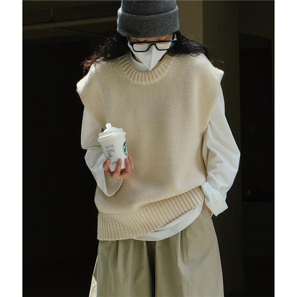 ベストクールネックレディースニットベスト春秋冬ベストセーターノlースリープ無地カジュアル韓国風ゆったり通勤着痩せ体型カバー ベスト