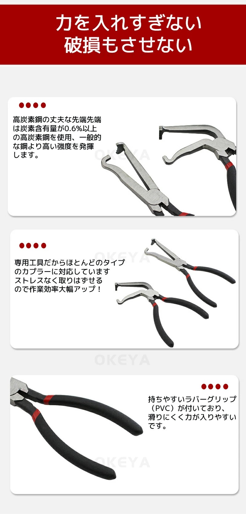 カプラー外し工具 曲げタイプ カップリングツール 配線カプラー コネクター取り外し プライヤー 自動車 バイク エンジン 整備作業 燃料ホース ナビ PC燃料パイプ クイックリリース クイックジョイン