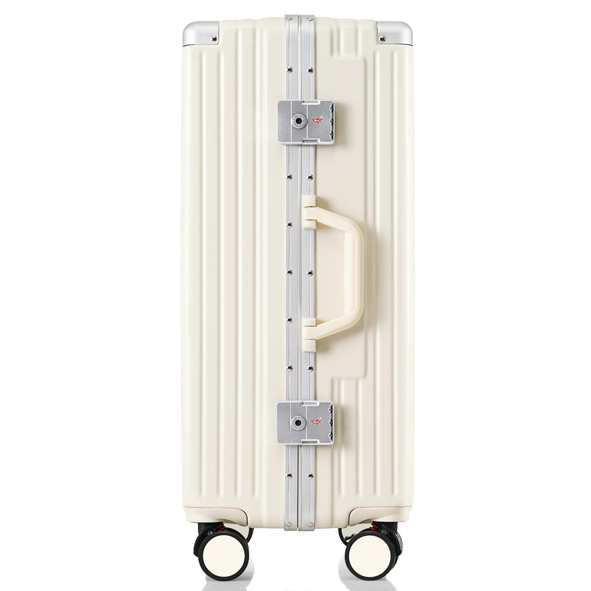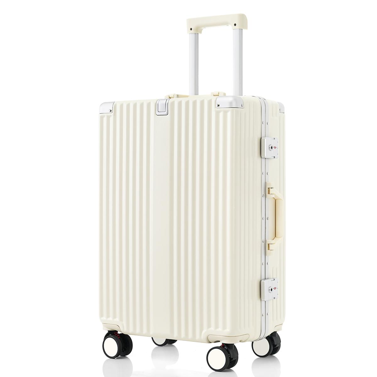 スーツケース Sサイズ フレームタイプ 機内持ち込み キャリーケース キャリーバッグ アルミ USBポート付き カップホルダー フック式底足 ストッパー付き 軽量 おしゃれ 静音 海外 高級感 TSAロック 小型 1~3日 China White