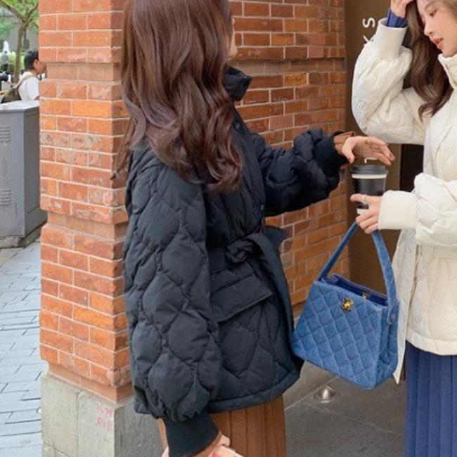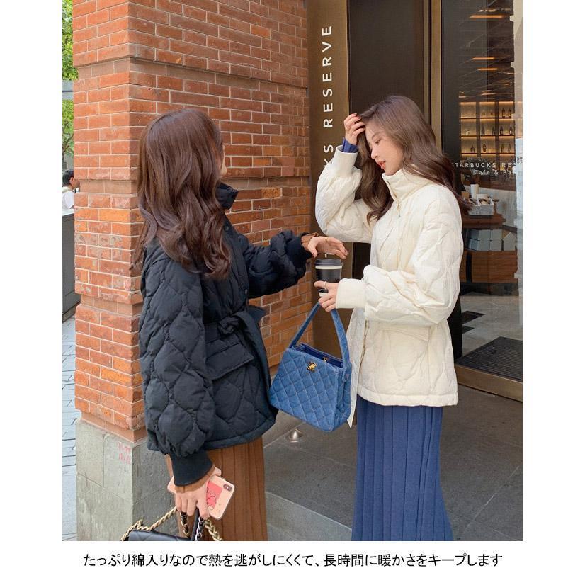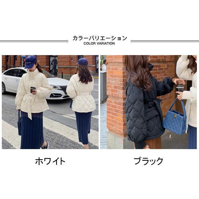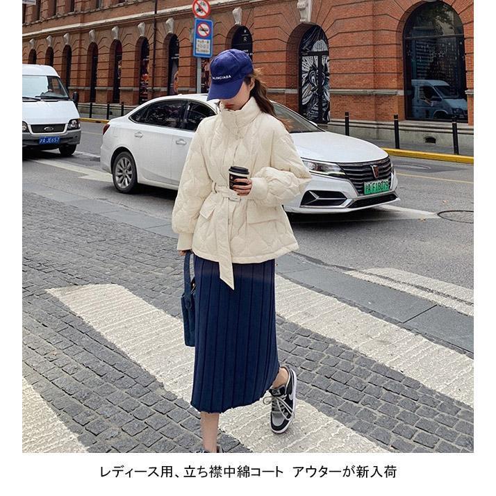 中綿コート レディース アウター 無地 立ち襟 軽量 防寒 保温性 前開き ポケット ベルト 暖かい ゆったり シンプル 秋冬 その他 アウター