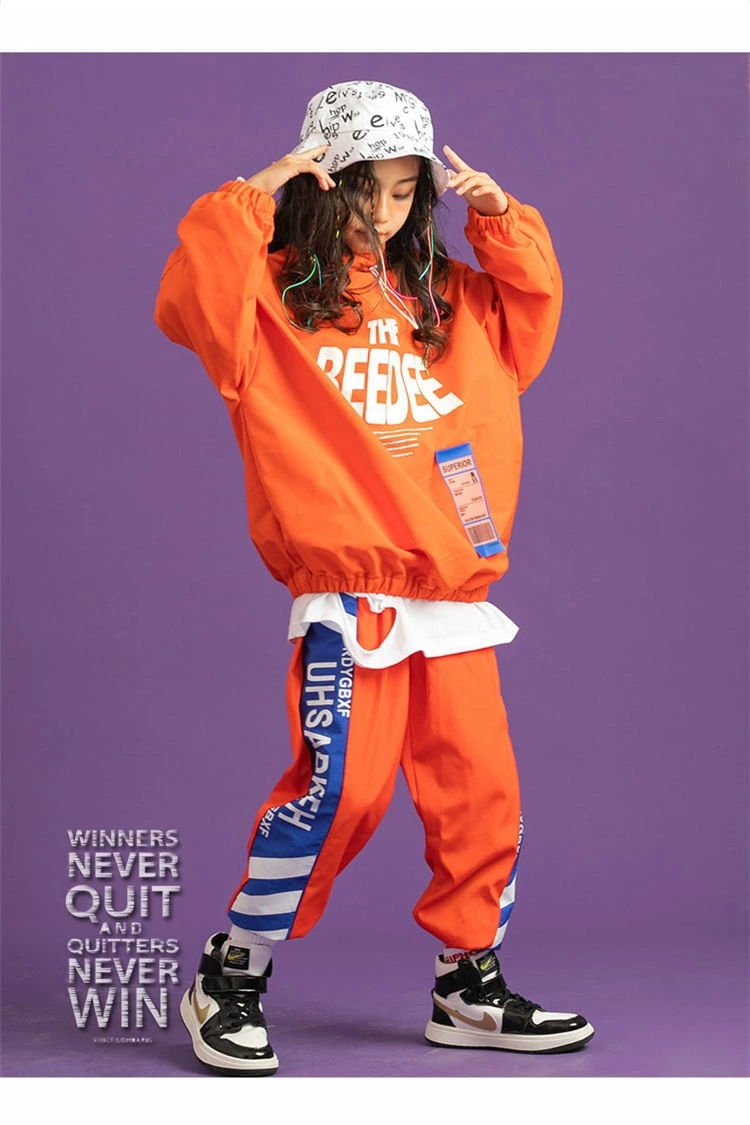 オレンジ ウィンドブレーカー ジャージ 上下 女の子 男の子 デニムパンツ 子供服 ヒップホップ ダンス衣装 セットアップ トップス 上下セット トレーニングウェア