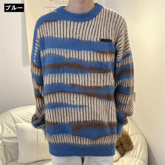 ニットセーターメンズレディースペアルックニットセータートップス長袖ストライプクルーネック ニット セーター