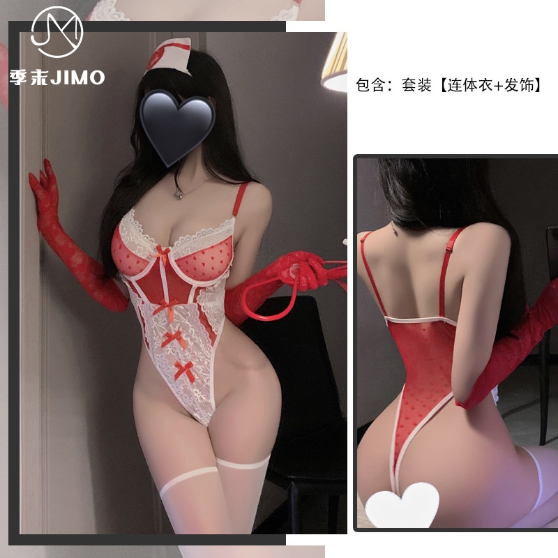ランジェリー 愛の水玉レースナースユニフォームボディスーツ コスチューム