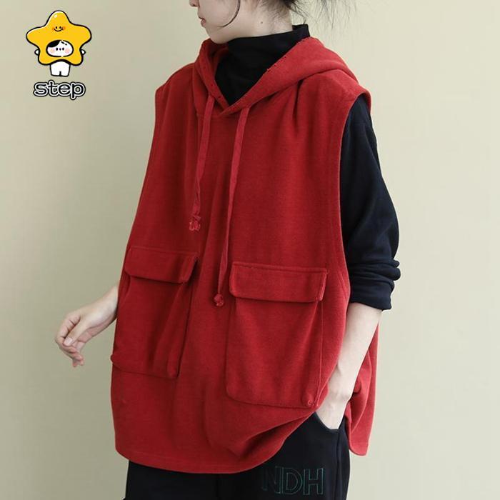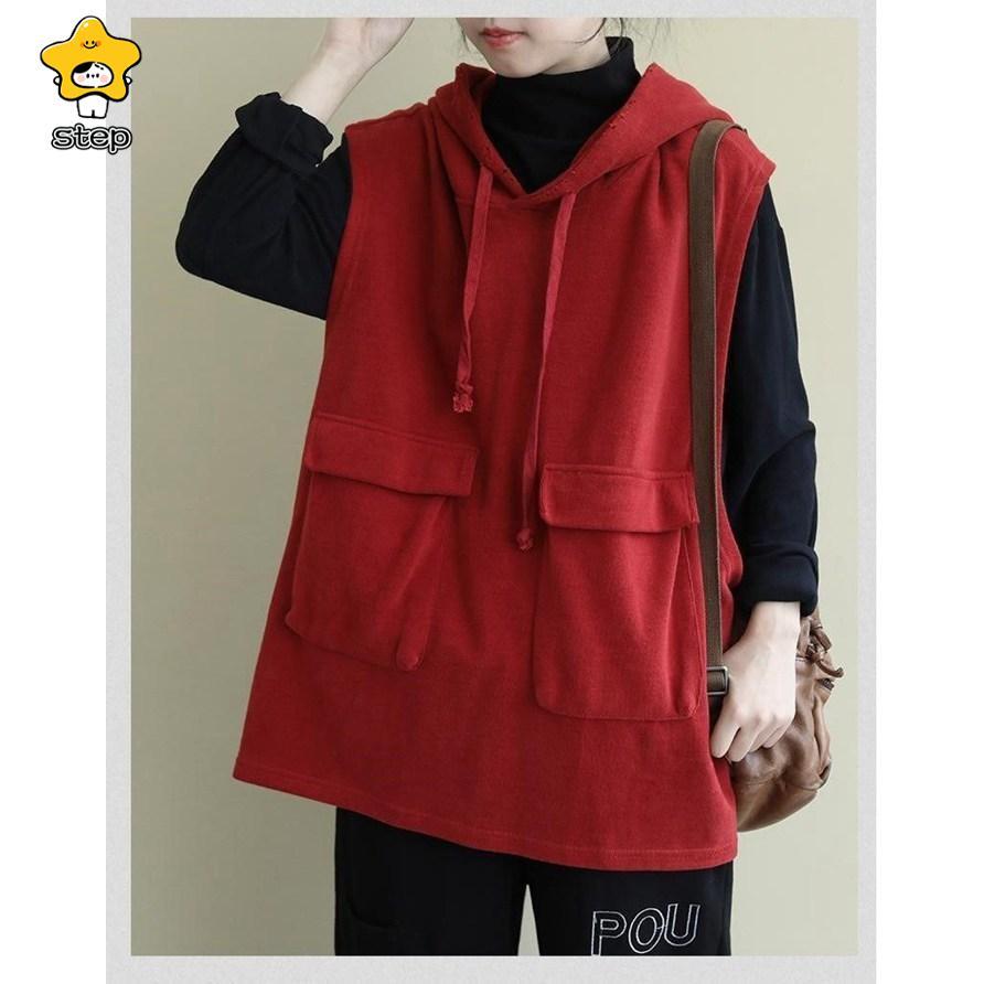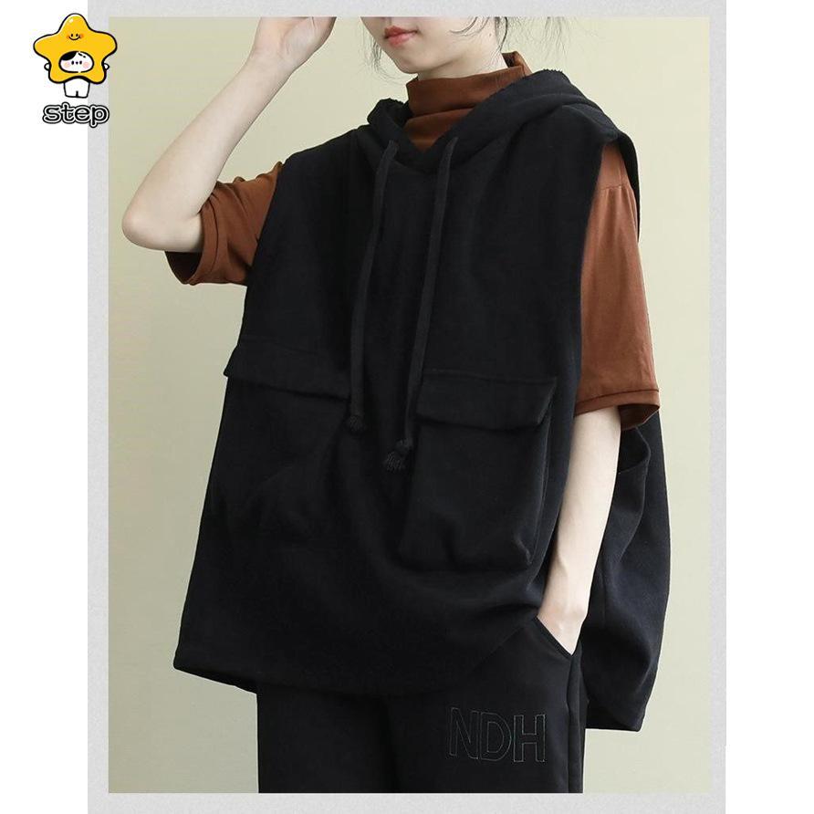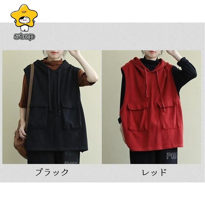 パーカー レディース ノースリーブ フード付き ベスト プルオーバー ポケット付き ゆったり 重ね着 レイヤード トップス お洒落 パーカー