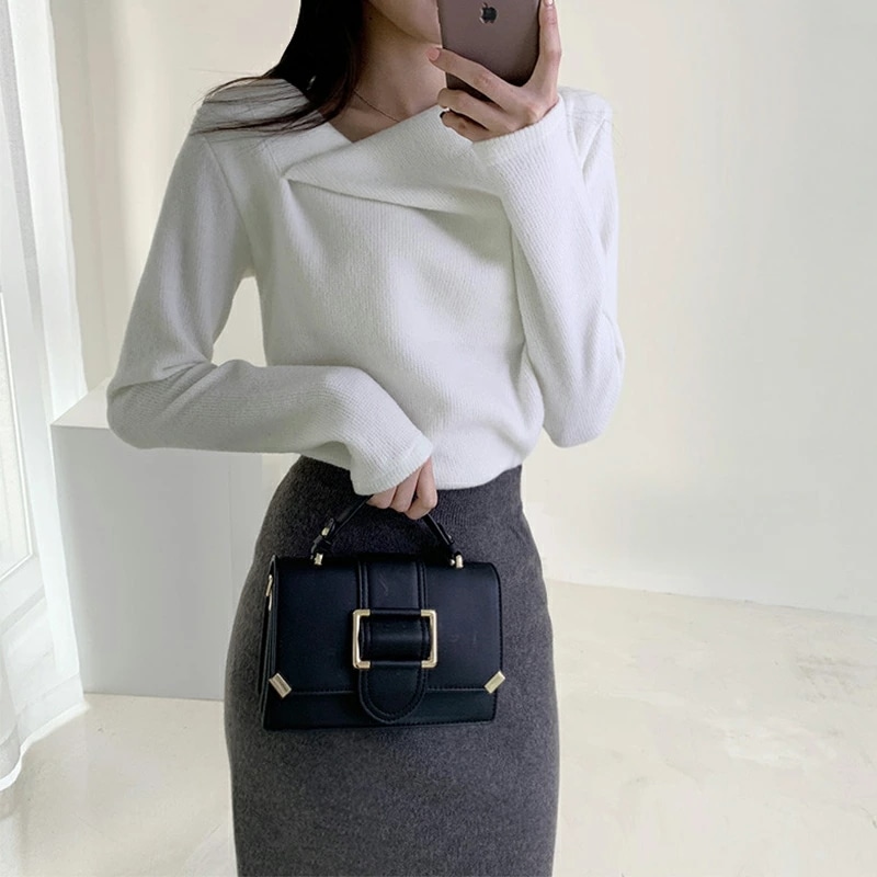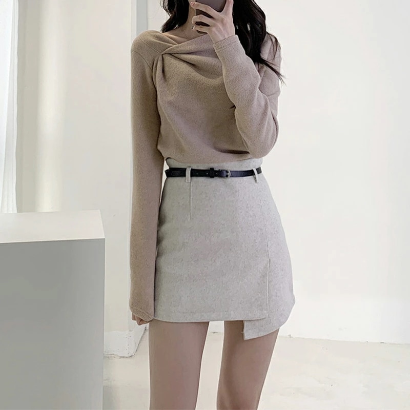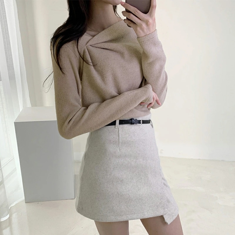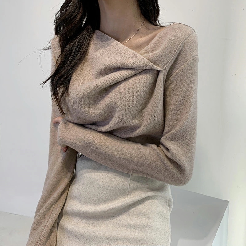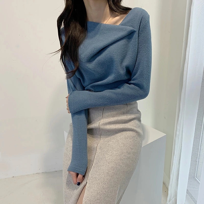 イレギュラーネックニット オフィスカジュアル きれいめニット ニット イレギュラーネック きれいめ 長袖 トップス レディース アシンメトリー プルオーバー ニットセーター シンプル