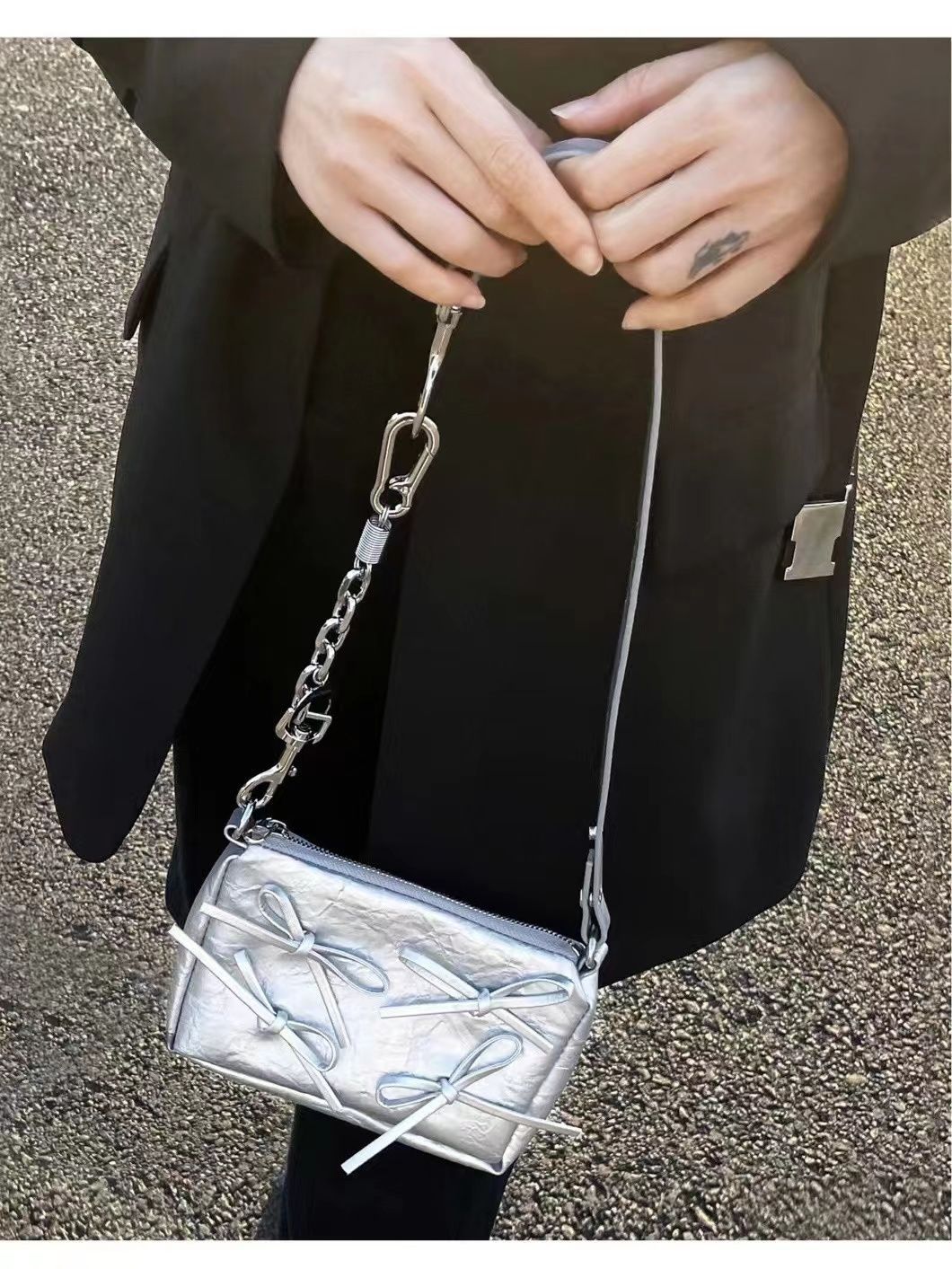 ミニバッグ 蝶結び シルバー かたかた掛け ショルダーバッグ 韓国ファッション ミニバッグ流行り ショルダーバッグ ショルダーバッグ