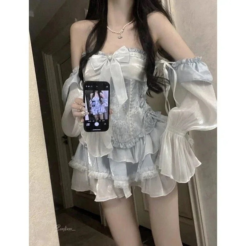 ロリータ ワンピース コスプレロリータ ドレス ハロウィン ギャルデザイン感ロリータリボンフリルウエストギャルセットアップスカート