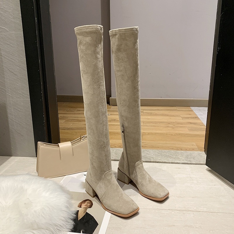 ロングブーツが復活 韓国ファッション ブーツ マーディンブーツ 着痩せストレッチ 太ヒール ロングブーツ ニーハイブーツ