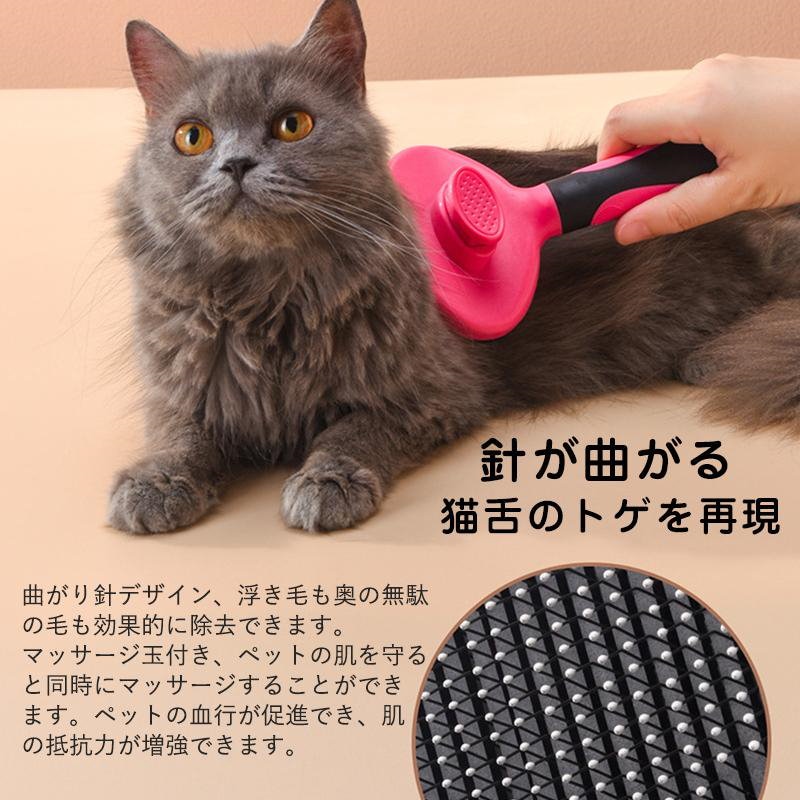 猫ブラシ 犬猫通用 ボタンを押してワンプッシュ式 長毛 マッサージ 中毛 短毛 スリッカーブラシ 犬ブラシ ペットブラシ 抜け毛取り ブラッシング ペット