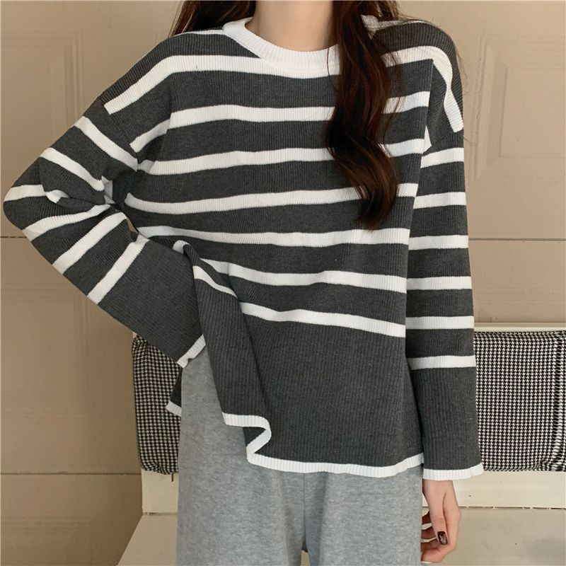 早秋新作 ニットトップス ニットハイネック ストライプセーター ハイネック上着 ゆったりフ レディース純色 長袖 無地 ニット