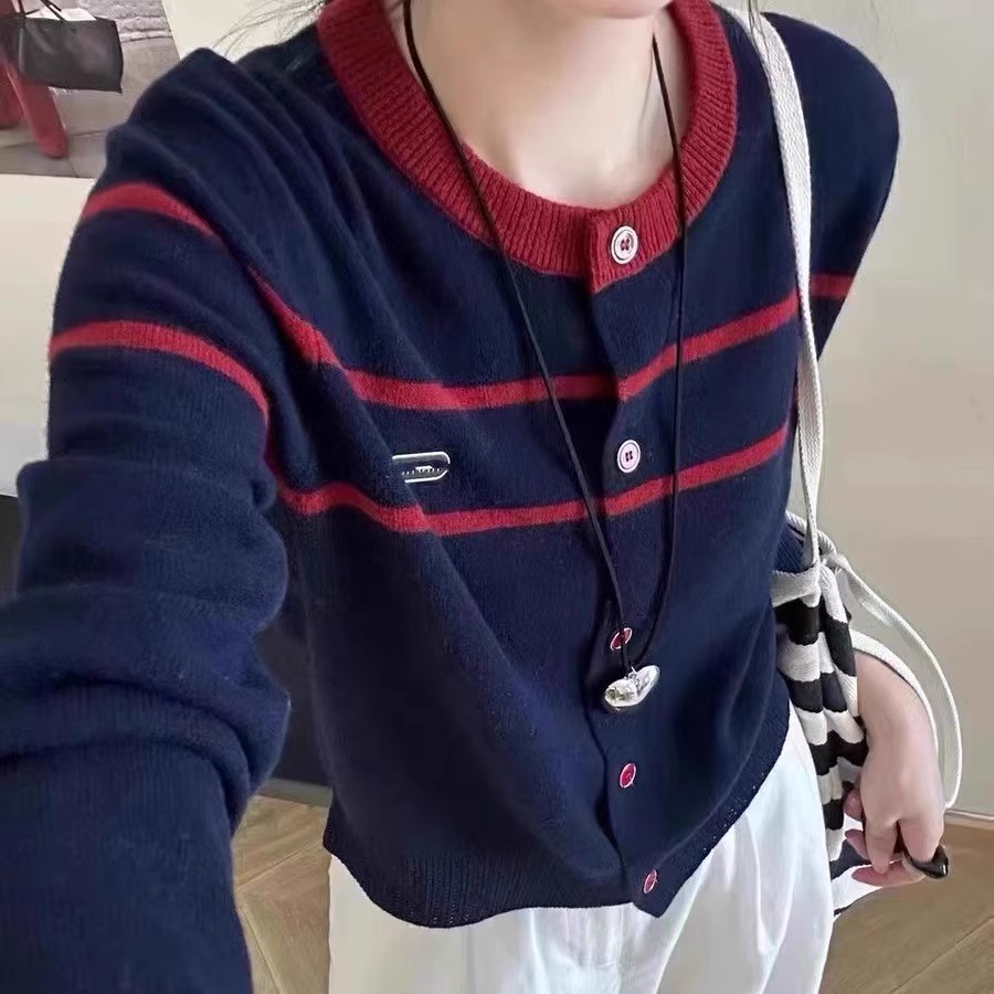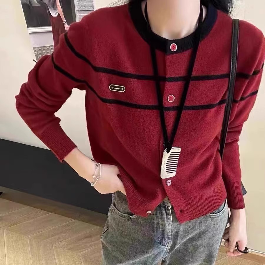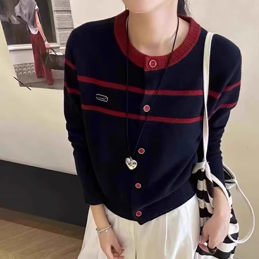 2024新作韓国ファッション秋冬ニットセーター デザイン感長袖ニットカーディガンレディース トップス ファッション 快適 アウター通勤 カーディガン