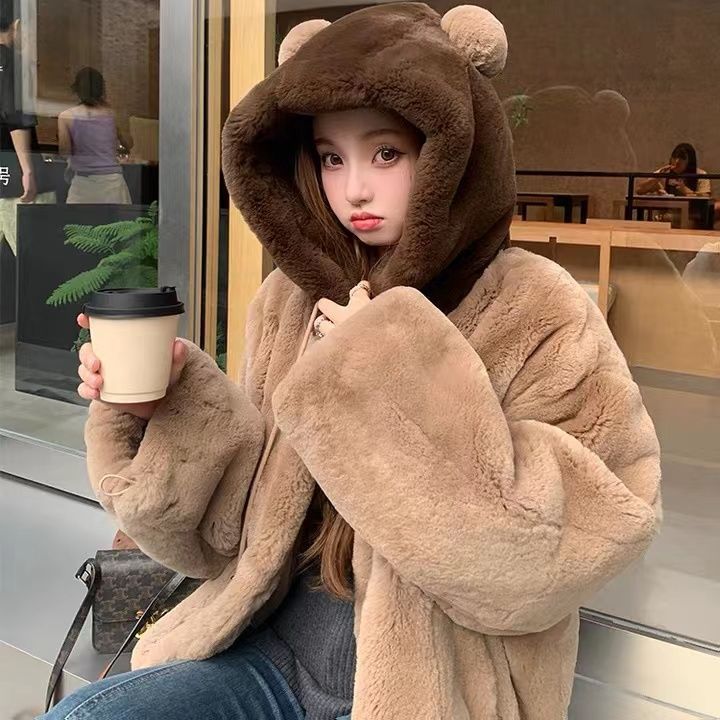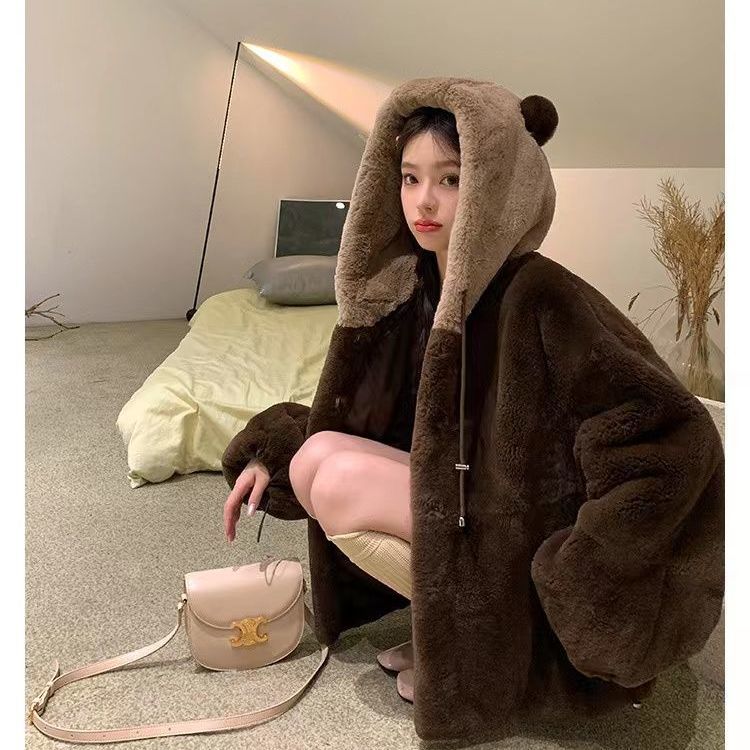毛皮コートファージャケット レデイース 冬 超保温 フード付きコート 韓国ファッション 可愛いふわふわ アウター 百掛け 厚手 冬ジャケット 毛皮アウター 学生 通学 通勤