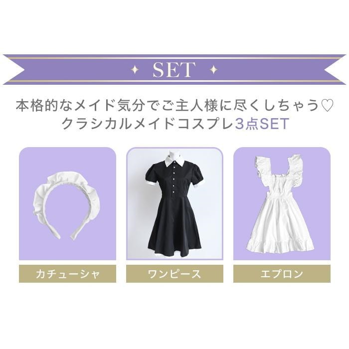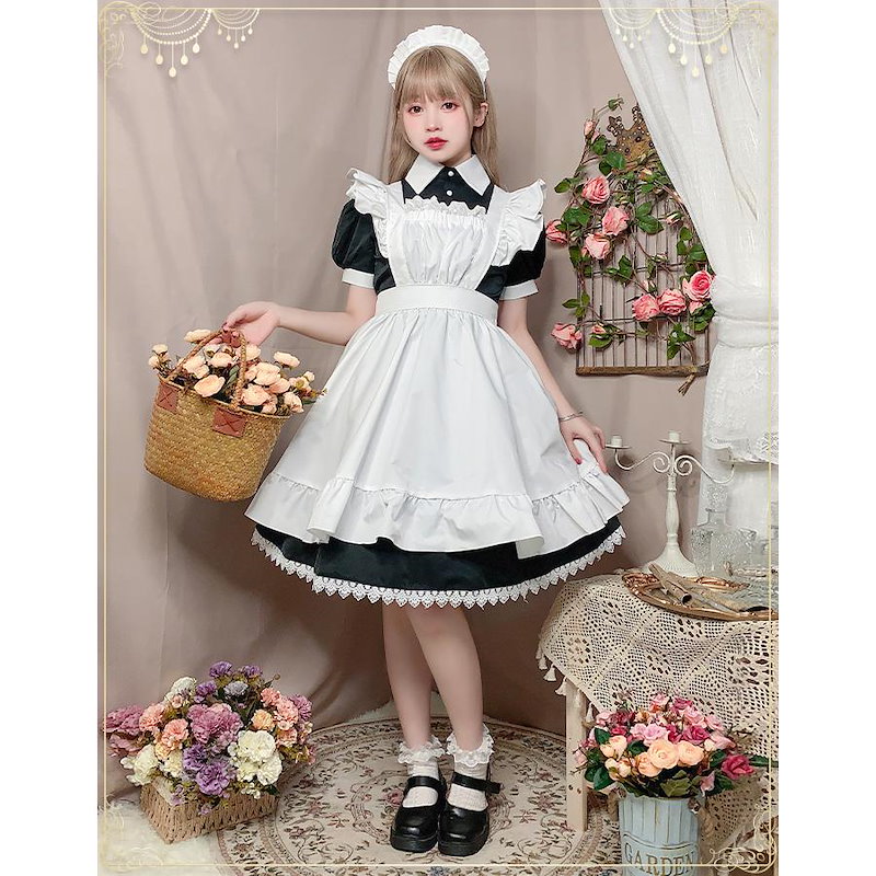 ハロウィン メイド服 コスプレ ワンピース エプロン ピンク ブルー ブラック 膝丈 ロング 半袖 ハロウィン