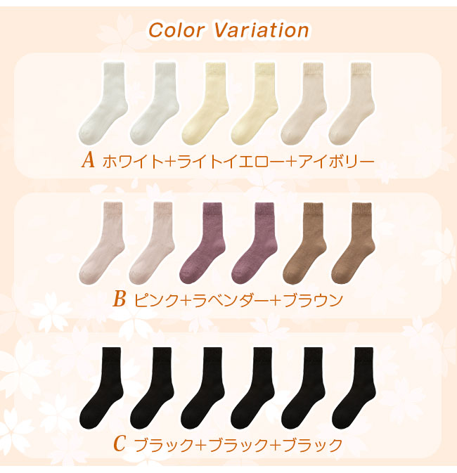 カラー: A(ホワイト+ライトイエロー+アイボリー) B(ピンク+ラベンダー+ブラウン) C(ブラック+ブラック+ブラック)