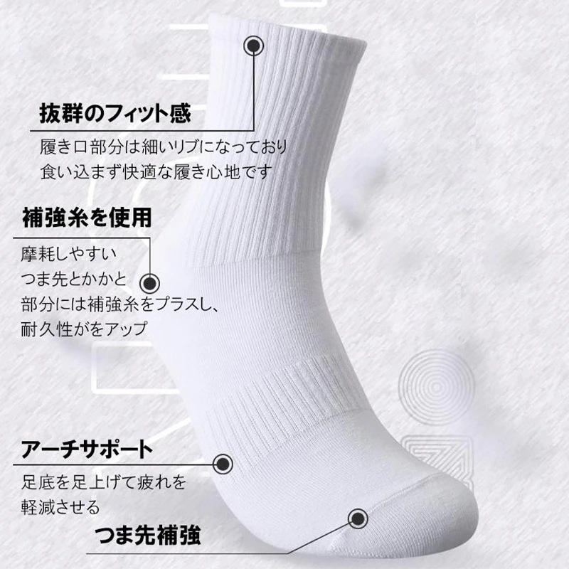 紳士 メンズスポーツ靴下 5足 ミッドカフ丈 抗菌防臭素材 綿混紡 白 黒 スクールソックス 抗菌 吸水即乾 くつ下 靴下 中学生 学生 通学 入学 準備 男子 女子